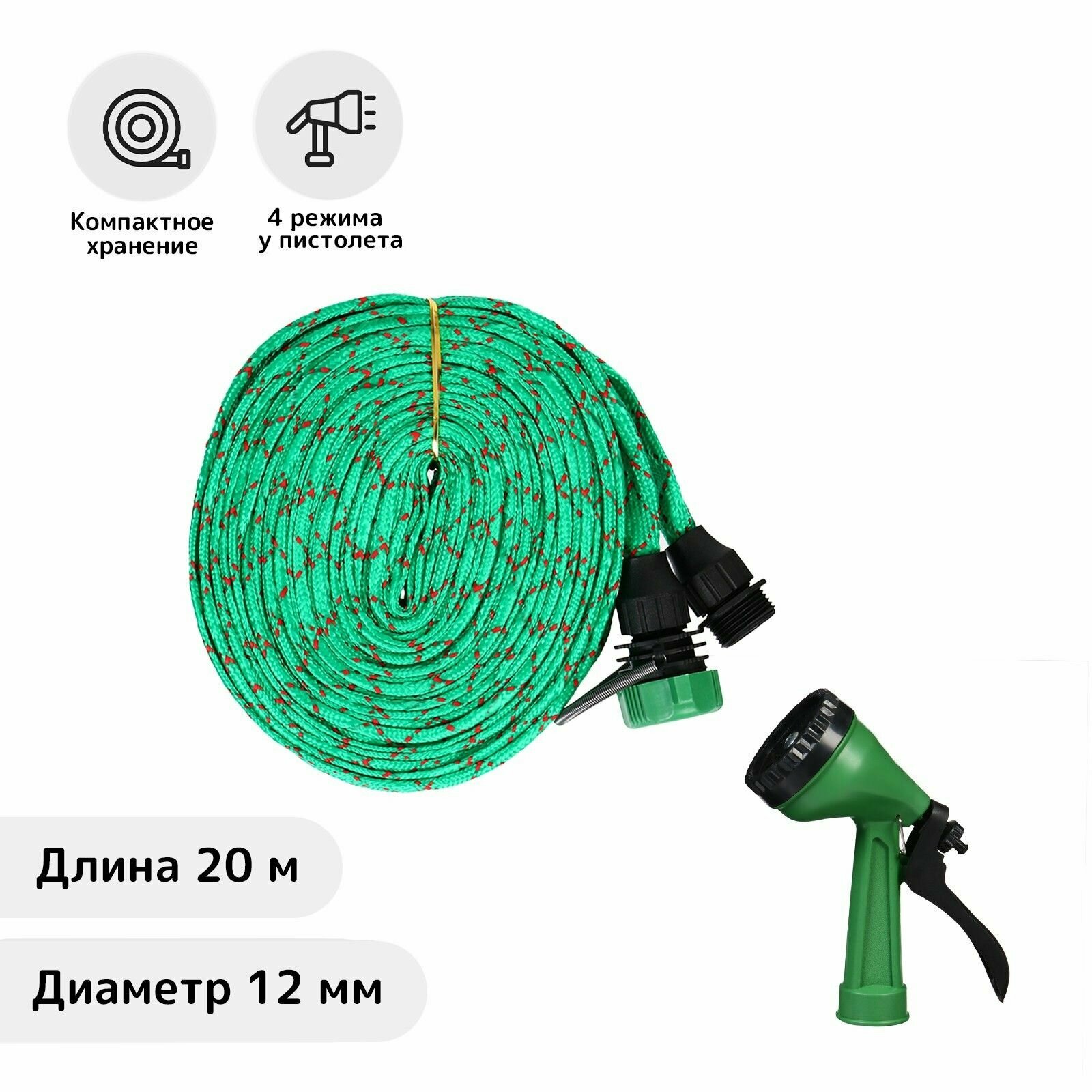 Шланг поливочный резиновый, 12 мм (1/2"), 20 м, в текстильной оплётке, с поливочным пистолетом, цвет микс