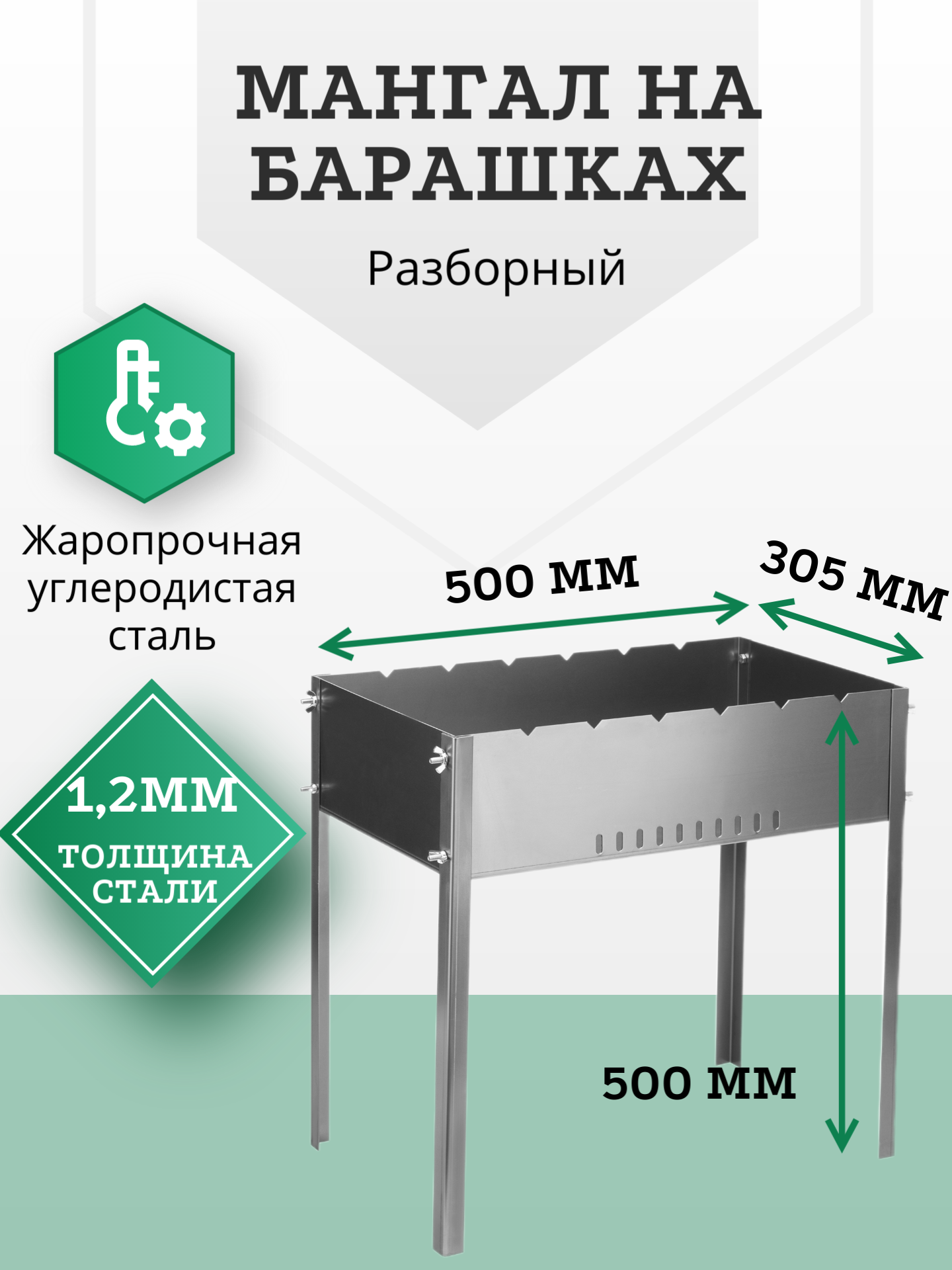 Мангал разборный 500 х 305 х 500 мм, сталь 1.2 мм, походный, для дачи,из металла