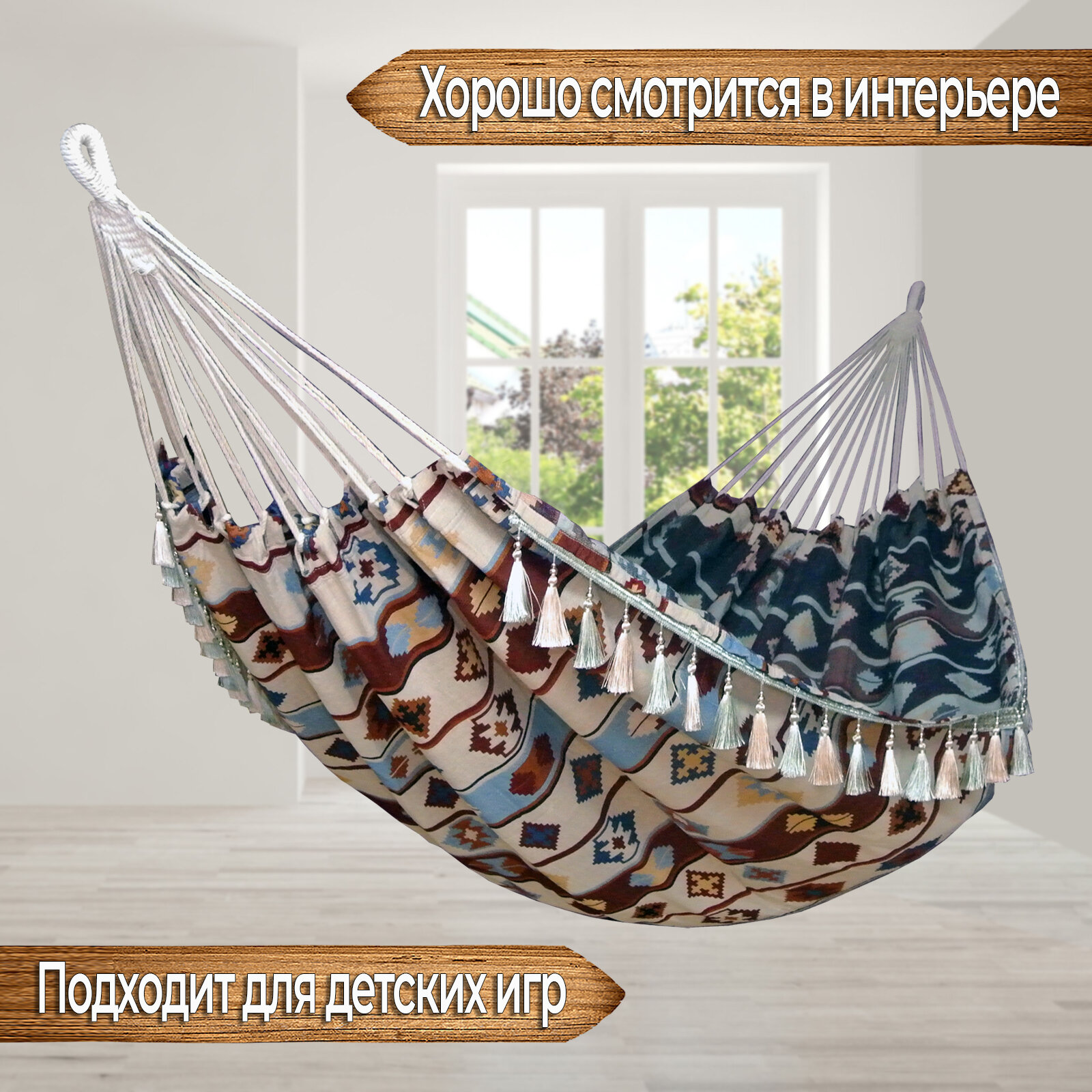 Купить Гамак с креплением (стропы с петлями + s), из хлопка, 193х150 см