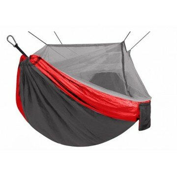 Гамак без планок NISUS 140х260 см., с москитной сеткой, нейлон 210T, Серый/Красный
