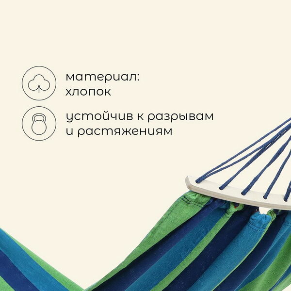 Гамак 200х80 см, дерево, цвет синий/зелёный
