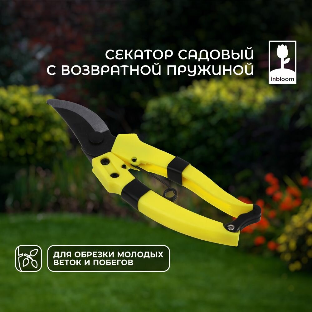 Секатор садовый ручной для деревьев, кустов и деревьев INBLOOM 7,5", возвратная пружина, металл, пластик интересное: