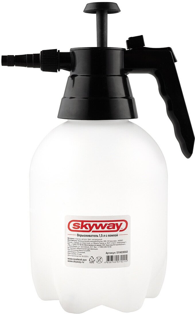 Опрыскиватель помповый SKYWAY, пластик, 1,5л, белый, черный, S11403002 интересное: