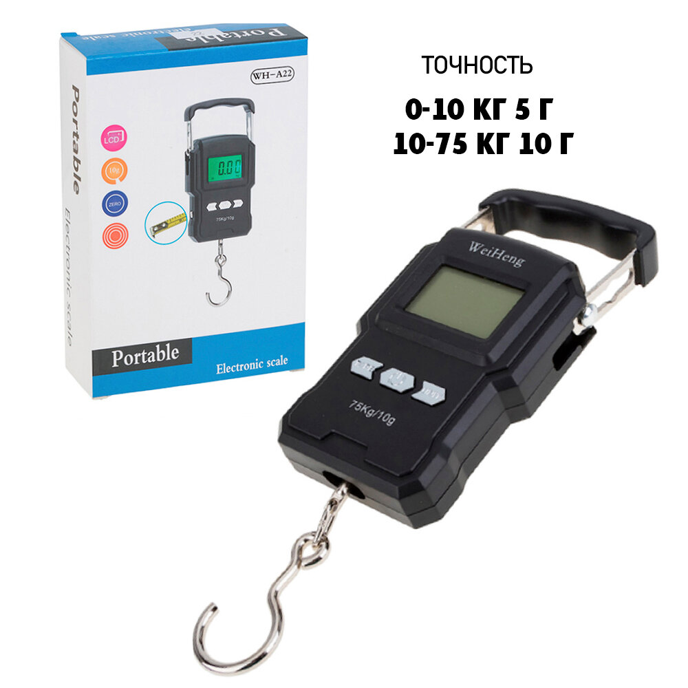 Весы электронные/ безмен электронный/ WH-A22 до 75 кг цвет - черный интересное: