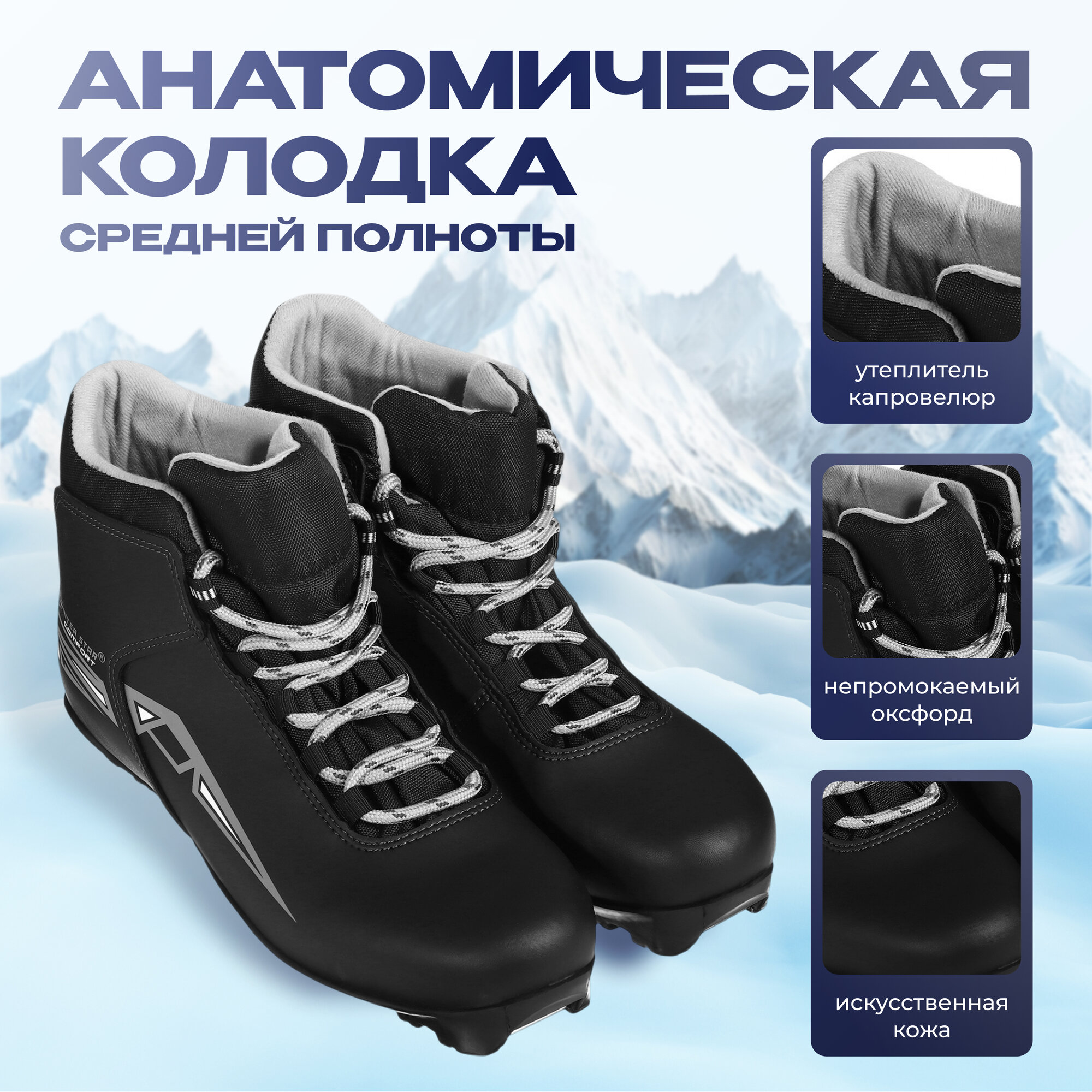 Ботинки лыжные, NNN, р. 43, цвет чёрный, лого серый