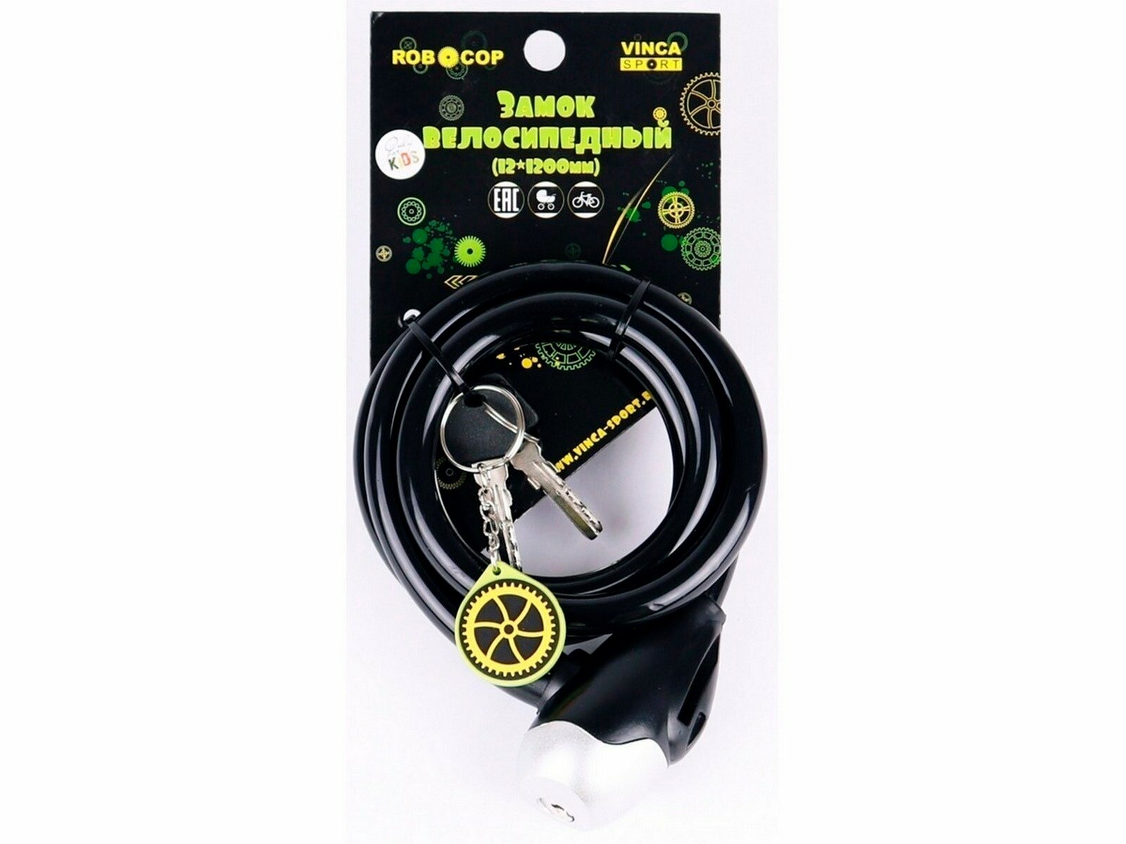 Замок велосипедный детский c брелоком Vinca Sport 12*1200мм, оранжевый, VS 561 Skater