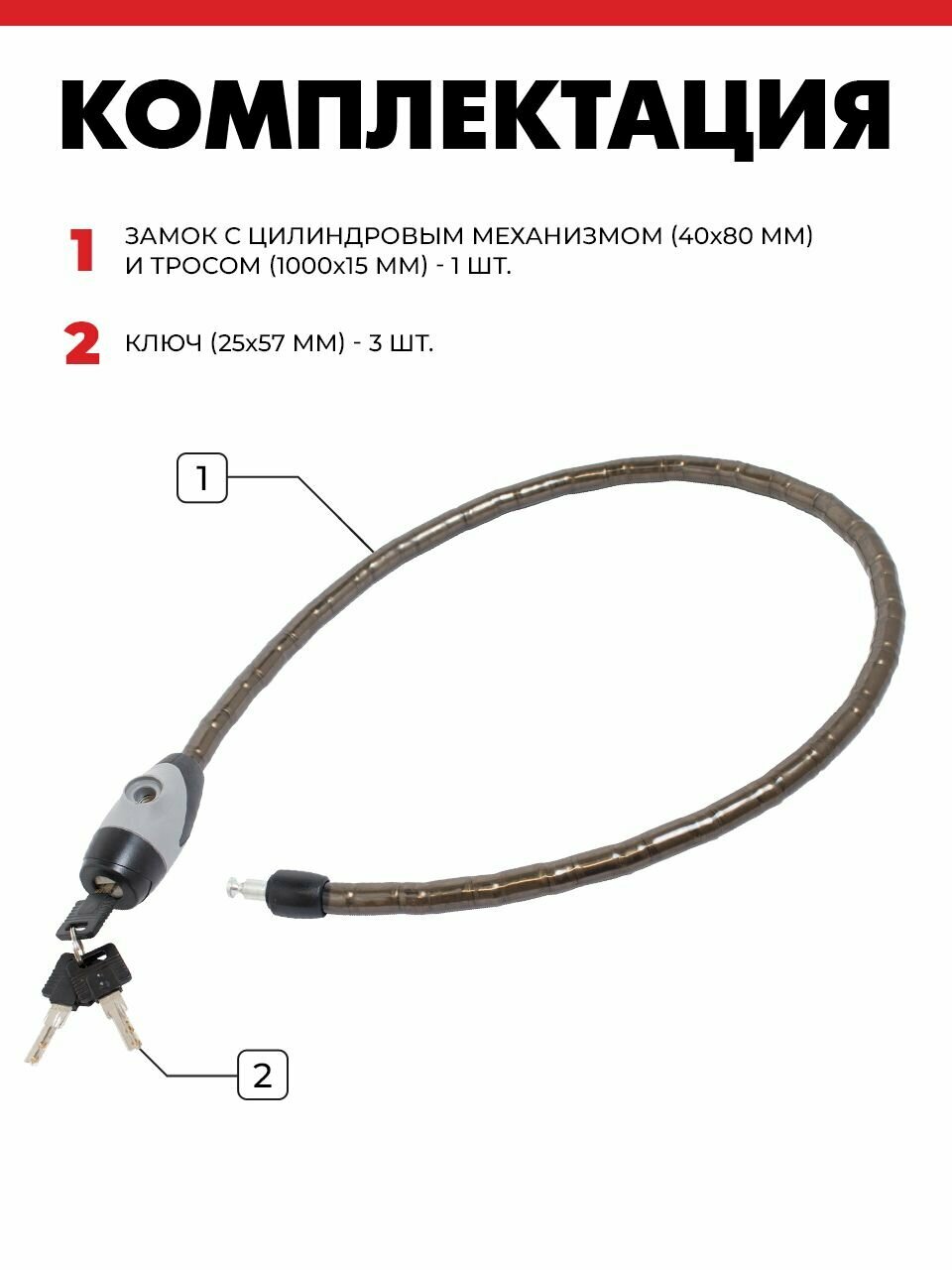 Замок для велосипеда с тросом 1,0м, d-15мм. Аллюр ВС-Т 15. интересное: