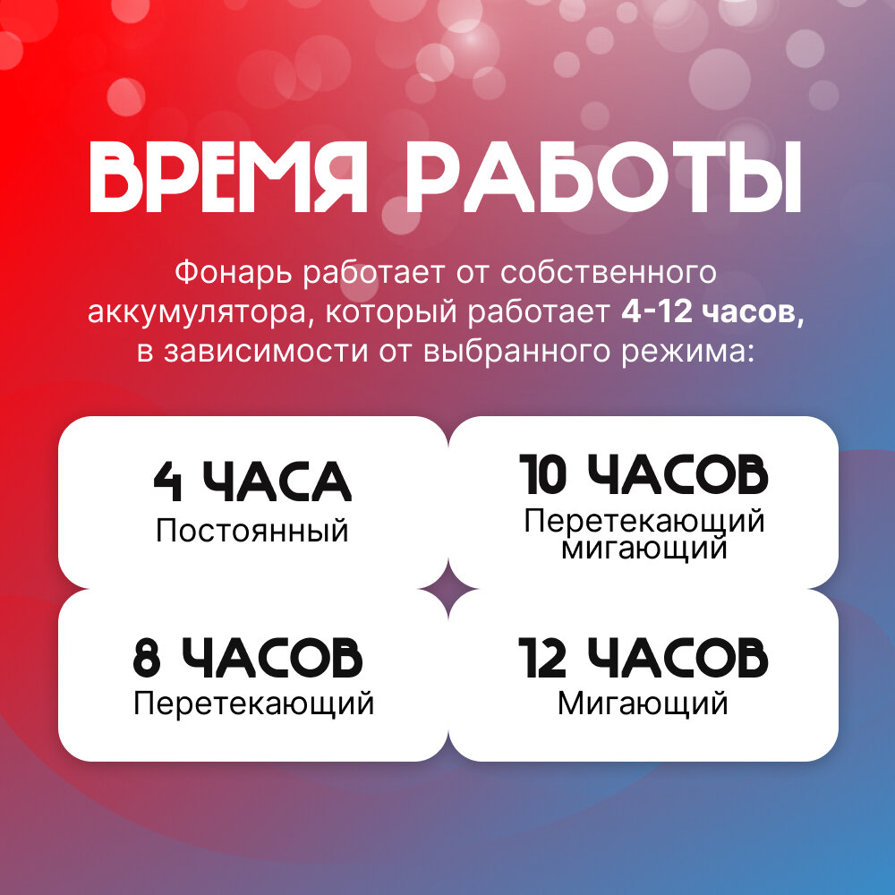 | Время работы | 1 - 5 часов / 10.5 - 24 часа / 5.5 - 10 часов |