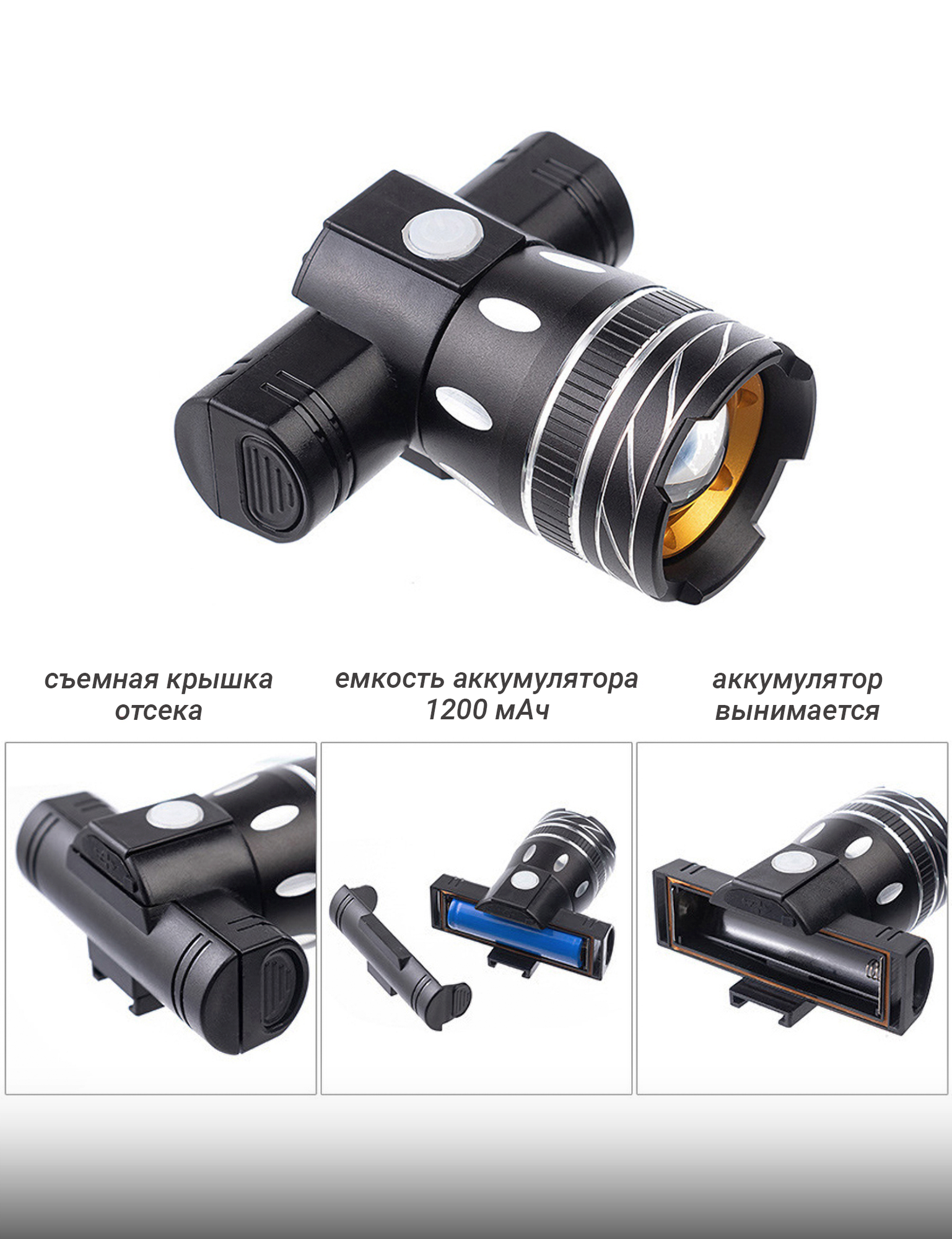 Фонарь передний яркий велосипед электросамокат объектив Beng Guo, зарядкой от microUSB, аккумулятор 1200