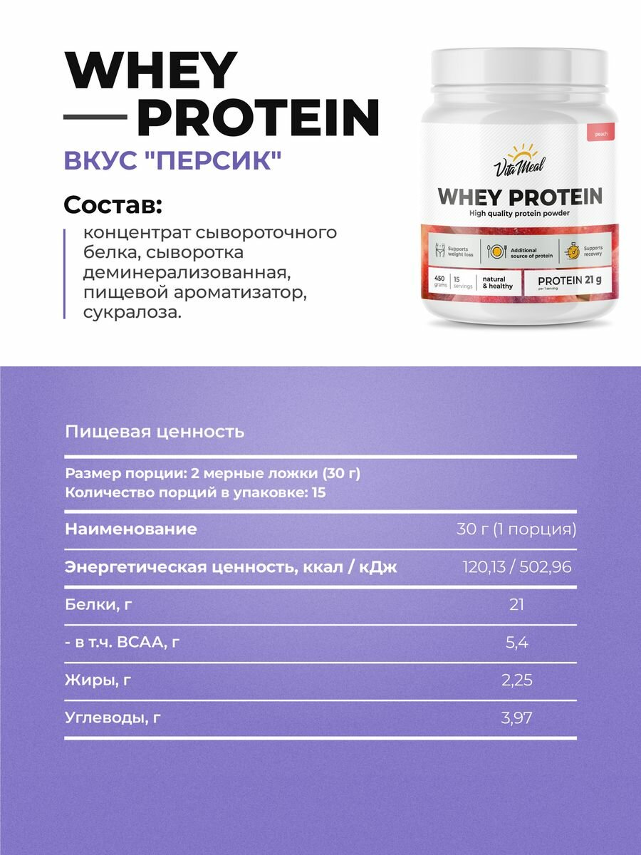 Купить Протеин сывороточный Whey Protein, 450 грамм, со вкусом Персик