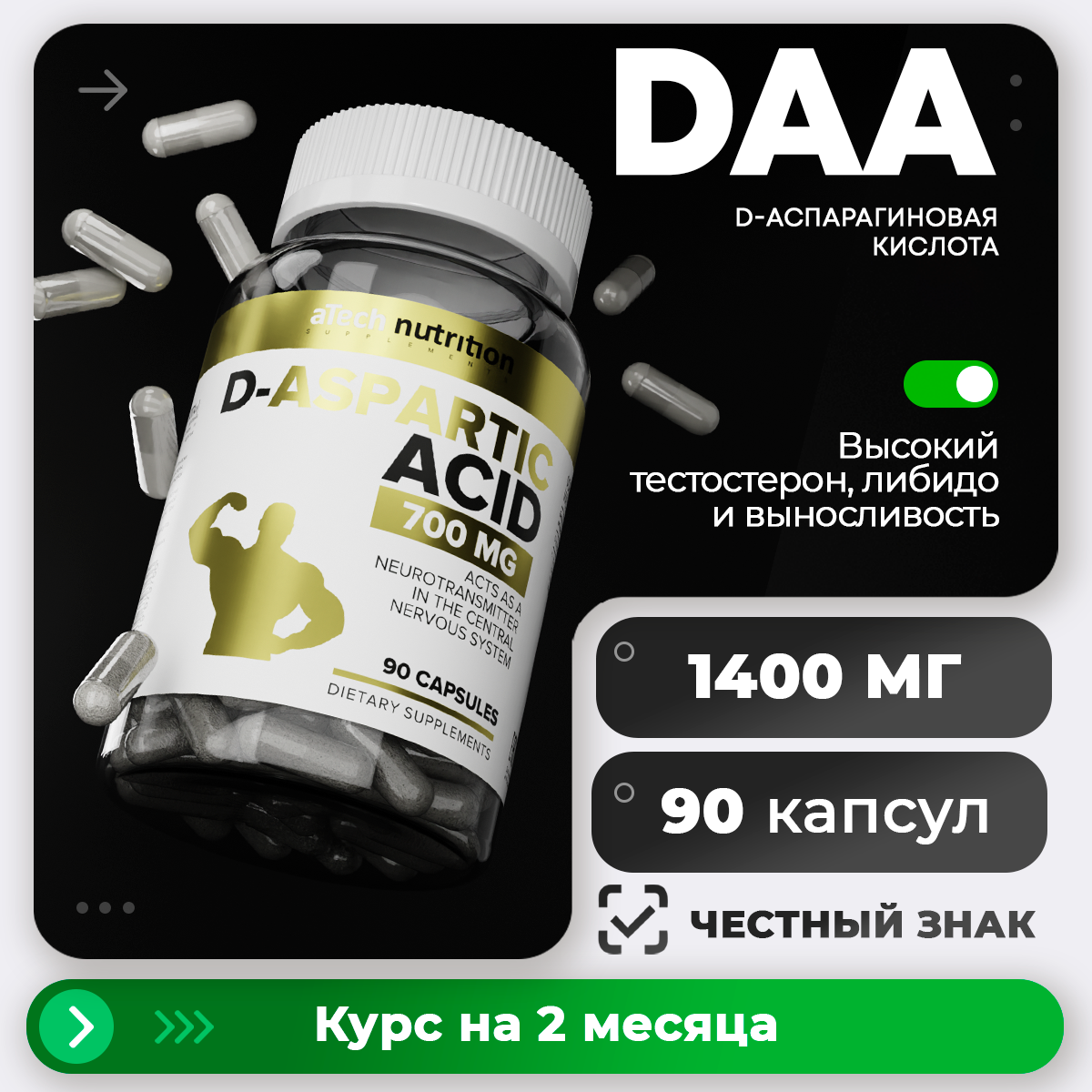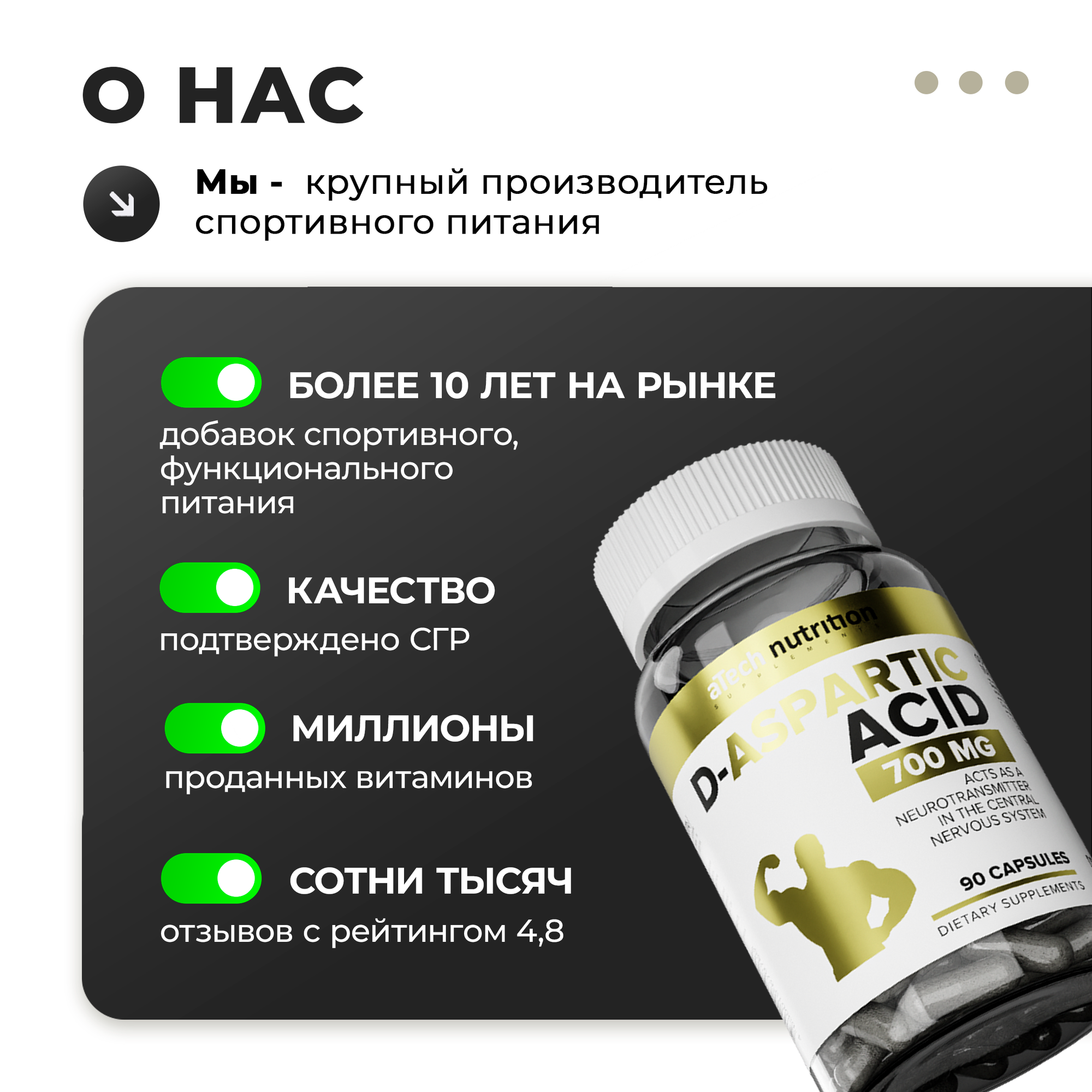 Д-аспарагиновая кислота aTech Nutrition DAA, БАД, аминокислота 90 капсул интересное: