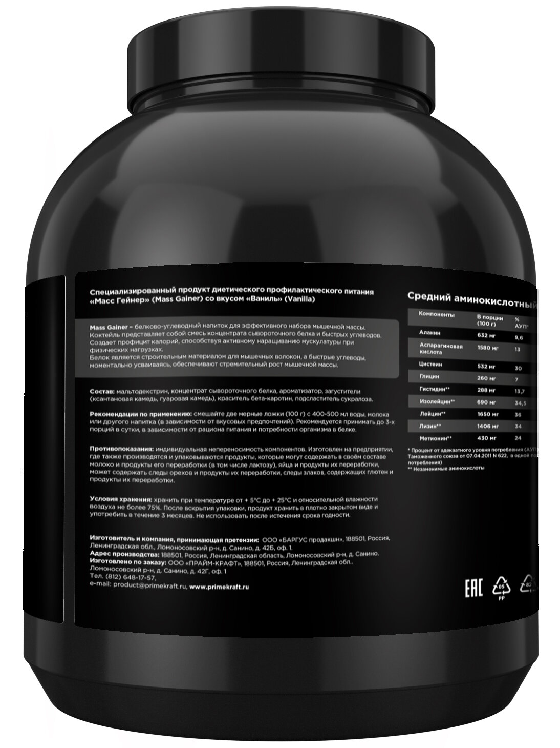 Купить Prime Kraft Mass Gainer - 3000 грамм (банка), ваниль