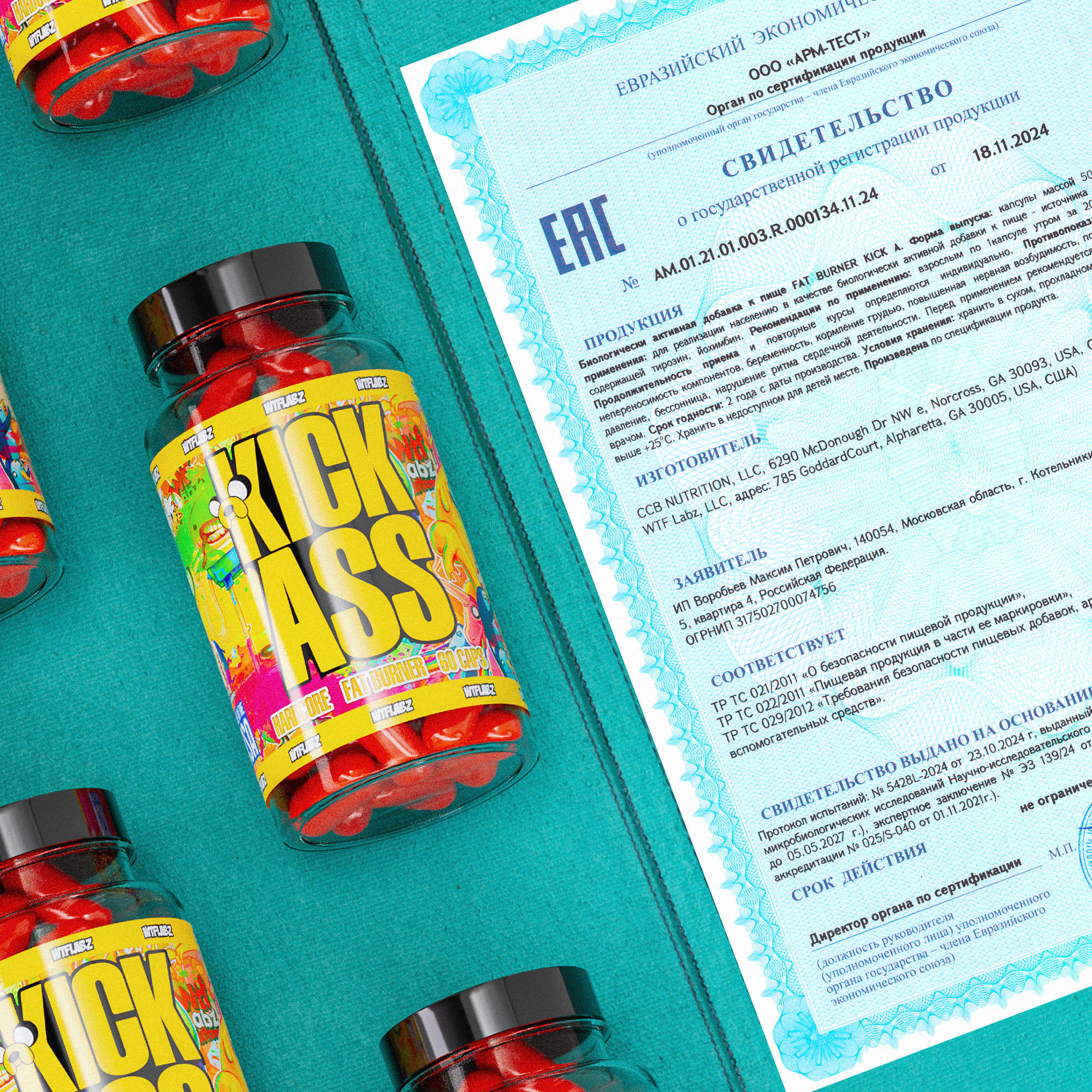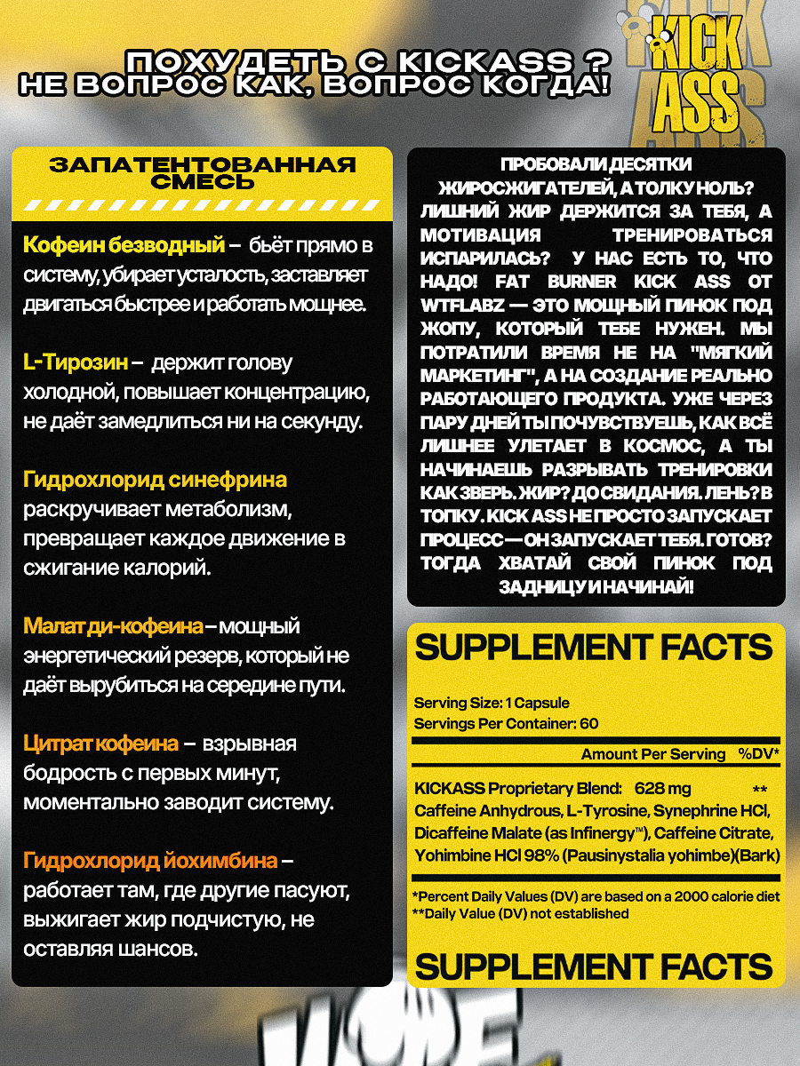 Жиросжигатель WTFLabz "Kick Ass", без вкуса, в капсулах, 60 шт. интересное: