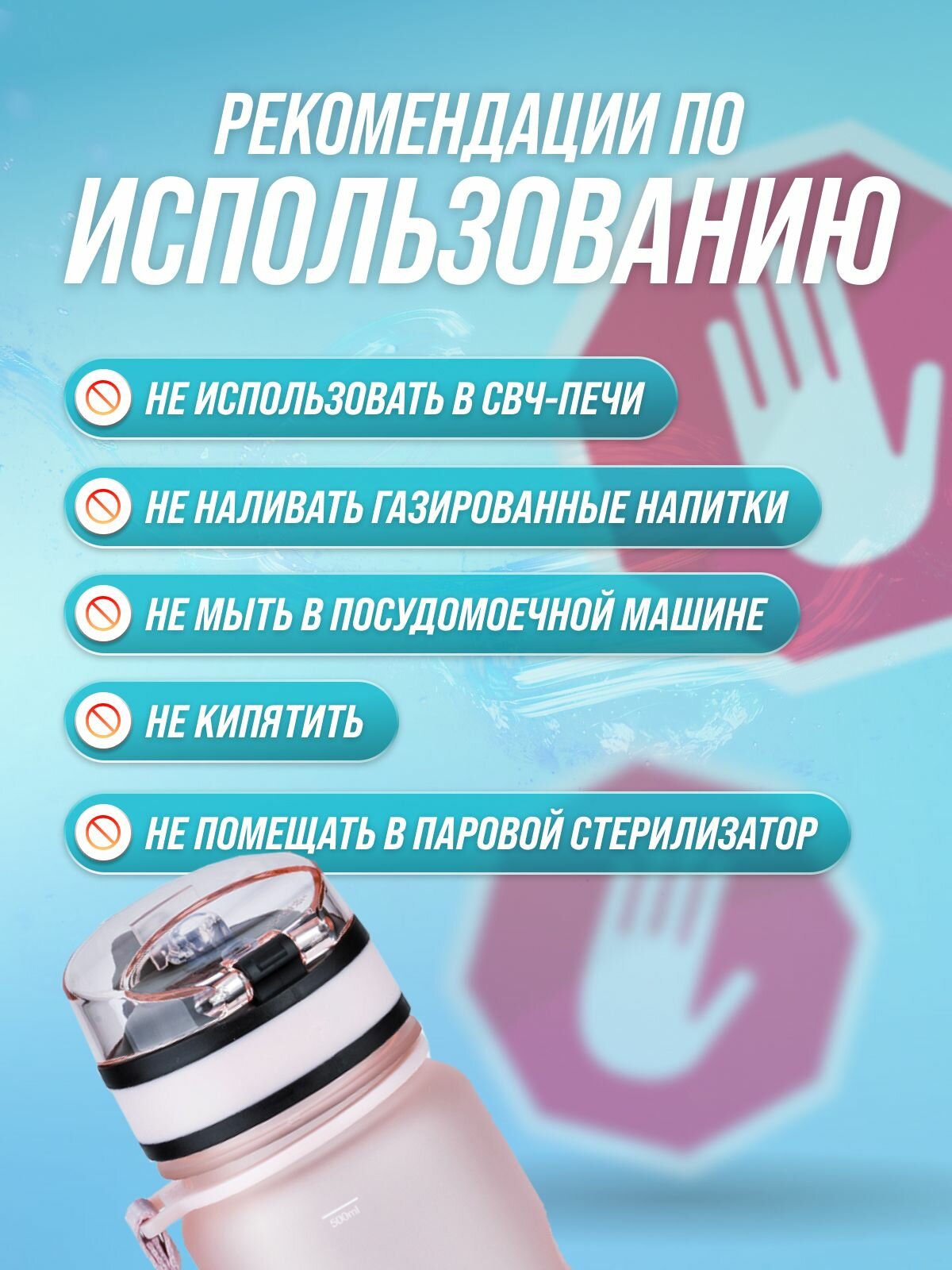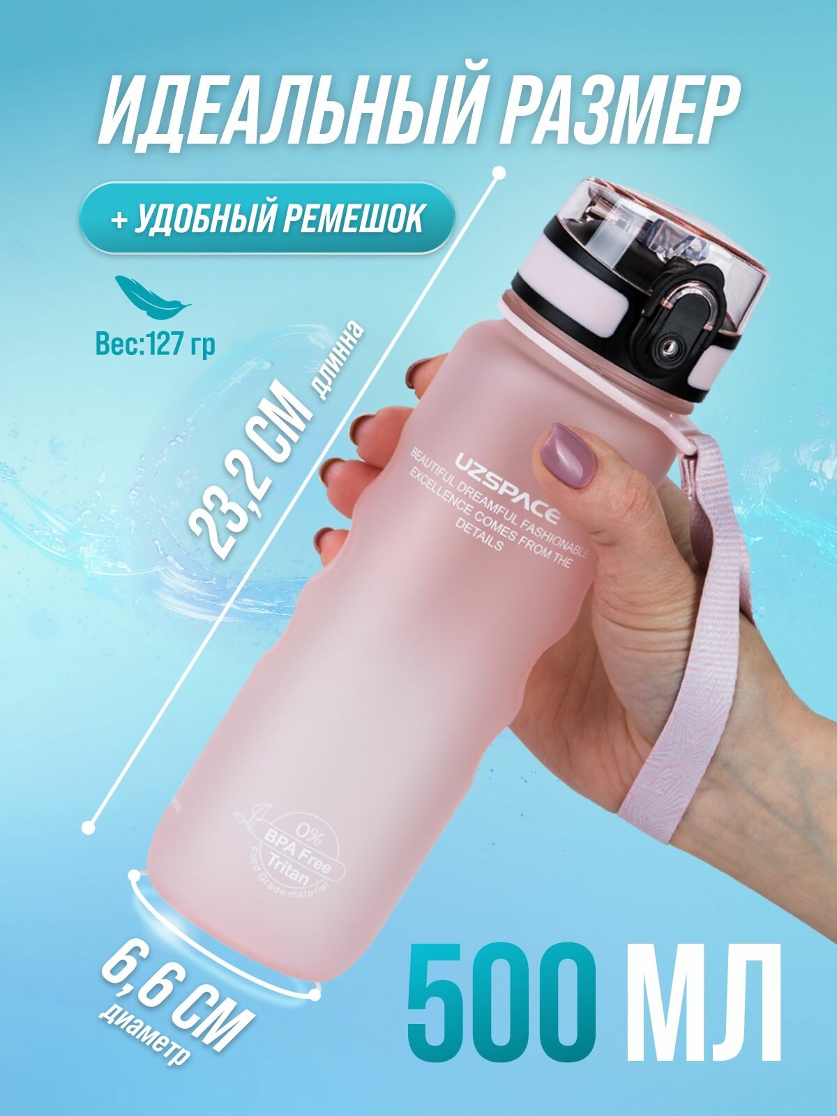 СохранитьБутылка для воды спортивная UZSPACE - из Тритана, с трубочкой, светло-розовая, 500 мл, с герметичной крышкой, BPA Free, для спорта и фитнеса, детская в школу интересное: