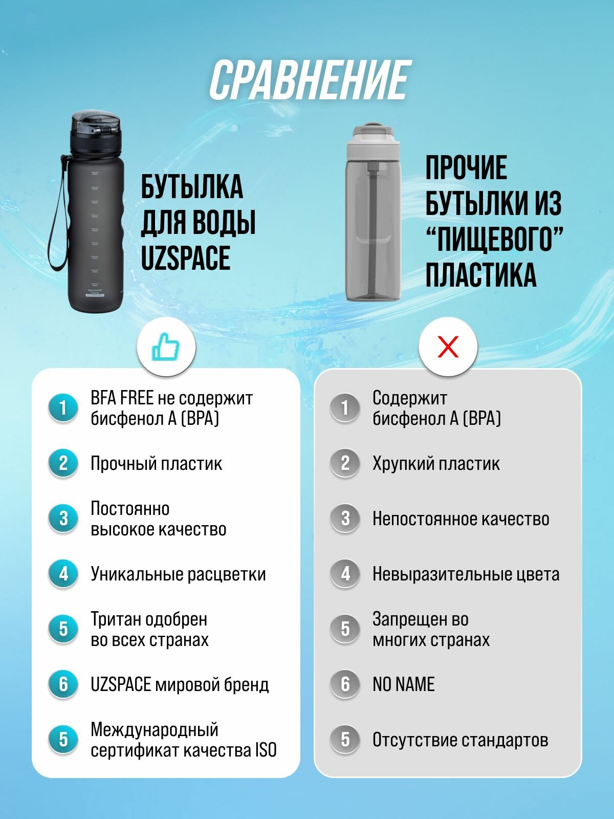 СохранитьБутылка для воды спортивная UZSPACE - из Тритана, с трубочкой, черная, 500 мл, с герметичной крышкой, BPA Free, для спорта и фитнеса, детская в школу интересное:
