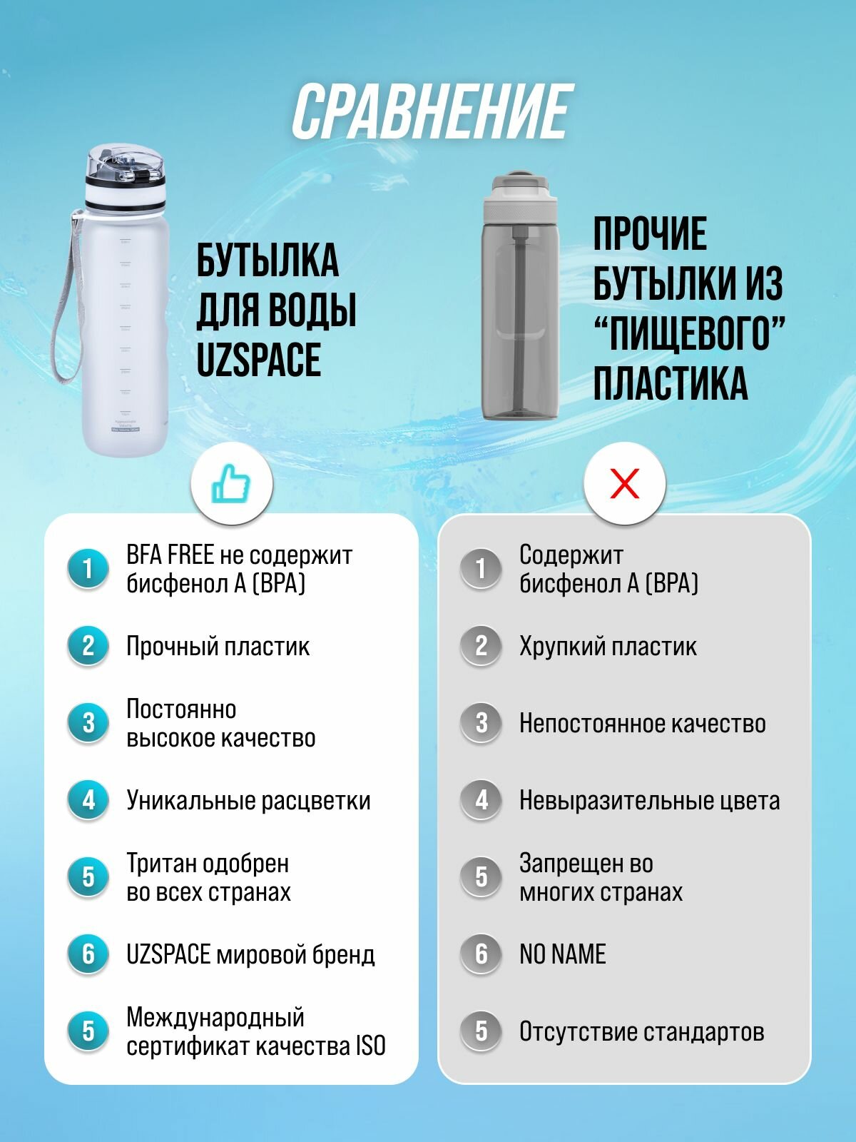 СохранитьБутылка для воды спортивная UZSPACE - из Тритана, с трубочкой, белая, 500 мл, с герметичной крышкой, BPA Free, для спорта и фитнеса, детская в школу интересное: