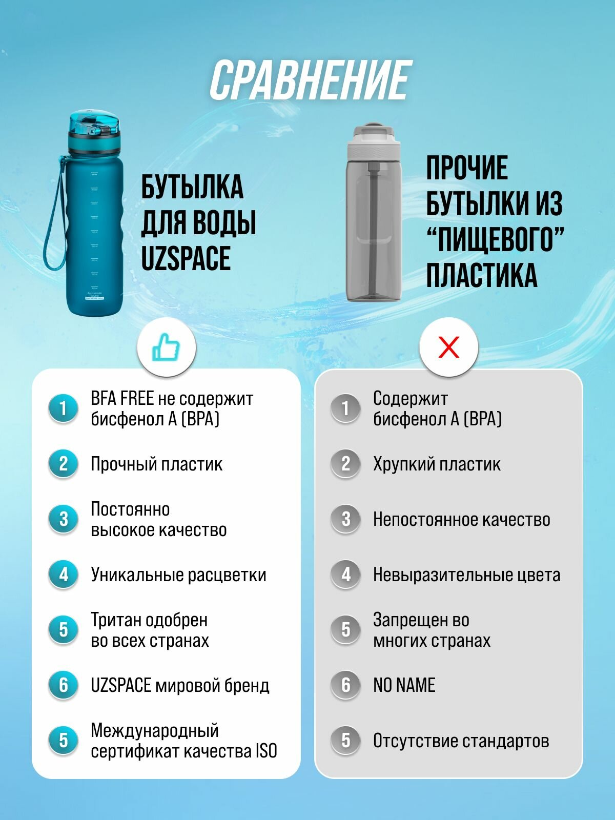СохранитьБутылка для воды спортивная UZSPACE - из Тритана, с трубочкой, бирюзовая, 500 мл, с герметичной крышкой, BPA Free, для спорта и фитнеса, детская в школу интересное: