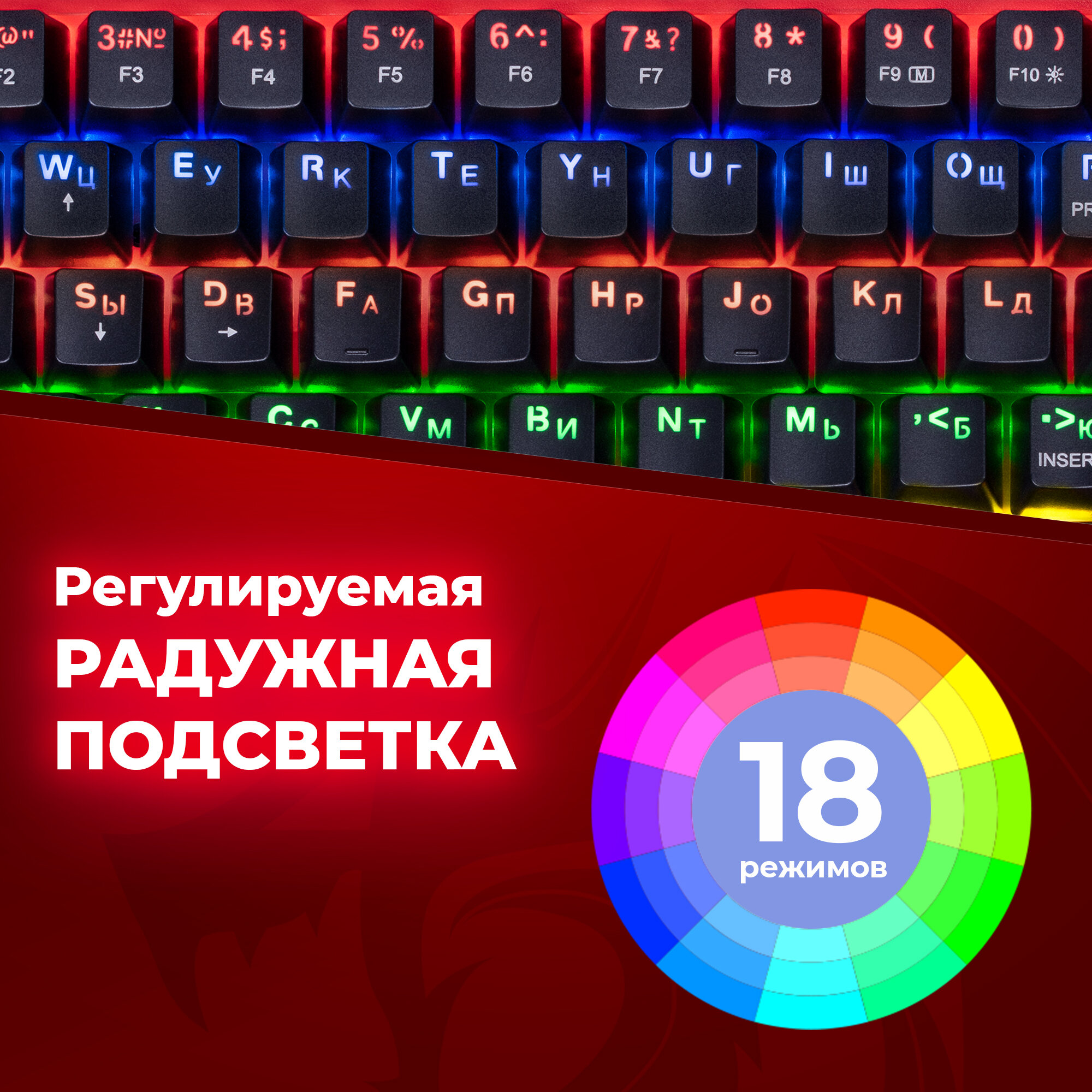 Клавиатура Redragon Dragonwarrior Rgb, тонкая, 94клавиш, б. п. (70520)