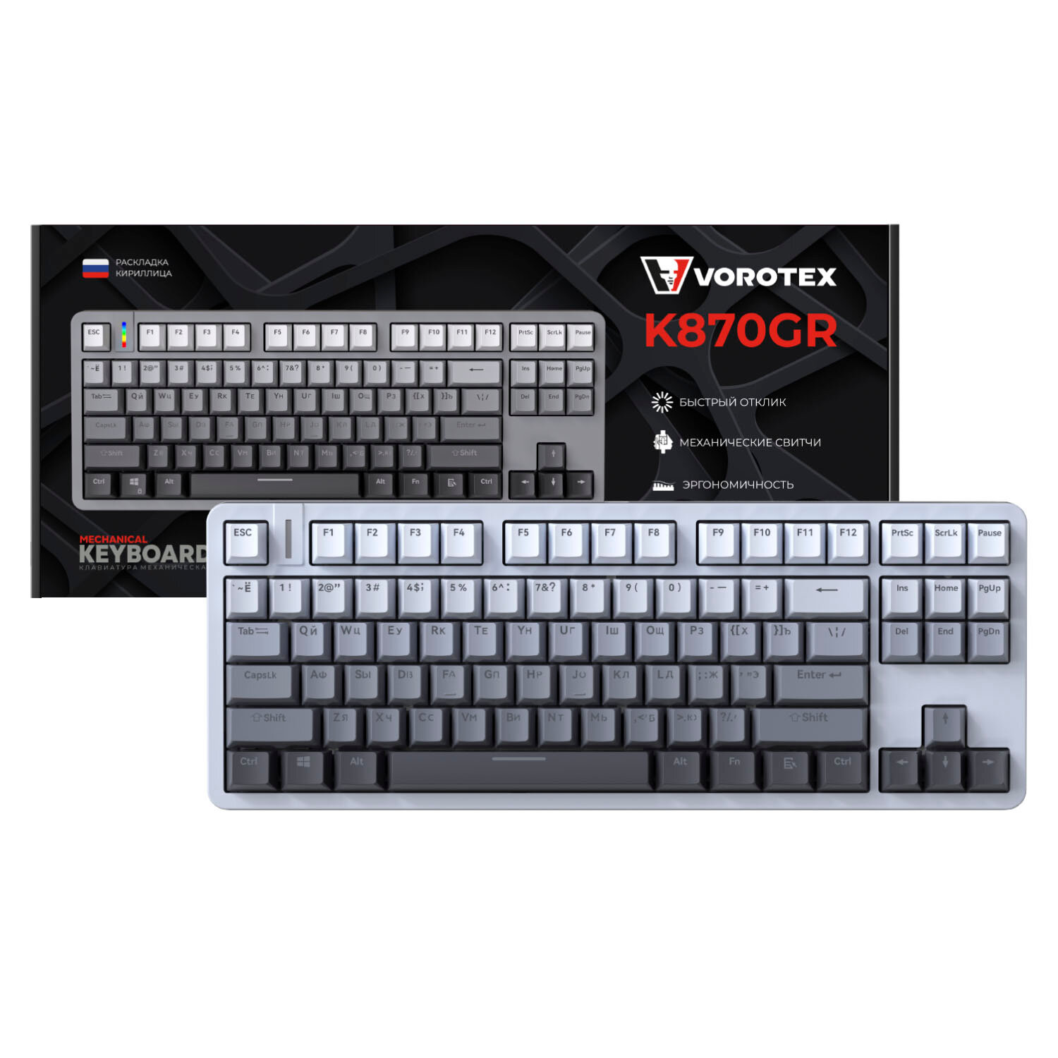Клавиатура игровая проводная VOROTEX K870GR Outemu Red Switch, 87 клавиш, русская раскладка (серый градиент) интересное: