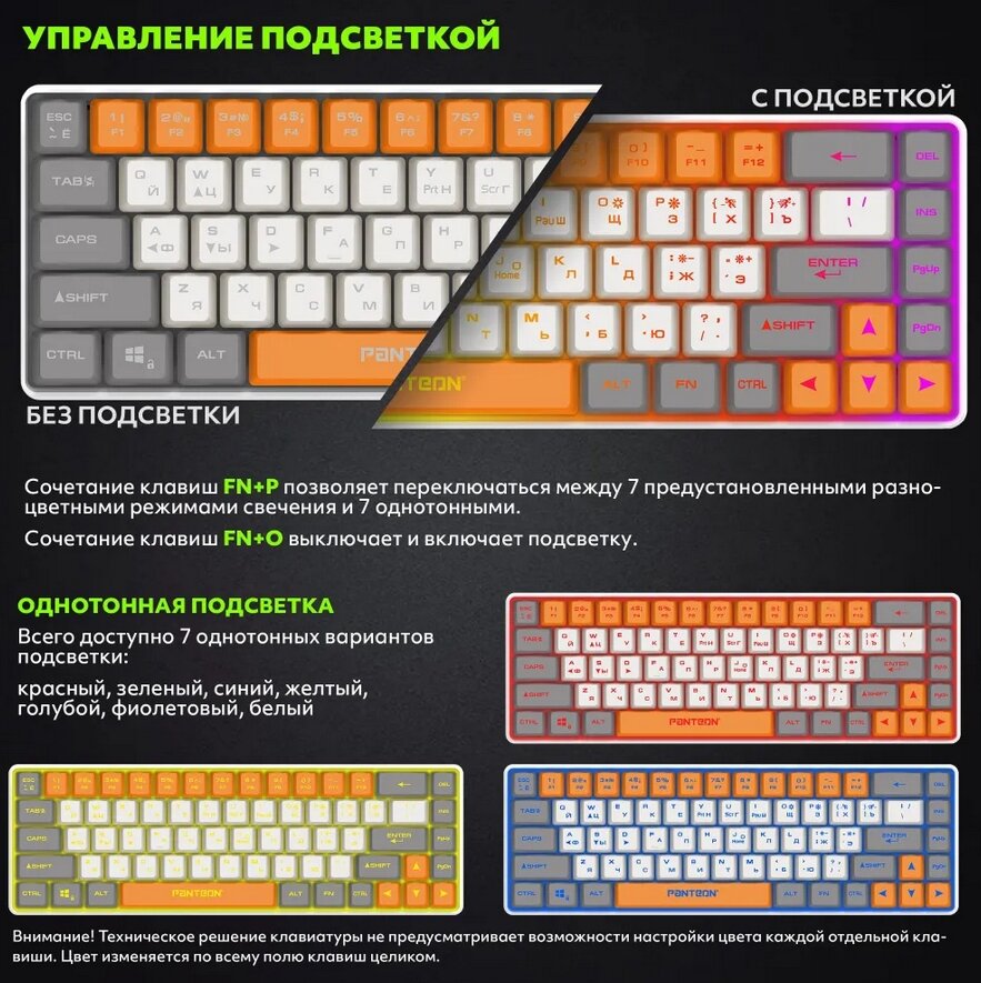 PANTEON M2 Grey-Ivory(02) Игровая мембранная TKL (65%) клавиатура с LED-подсветкой MULTICOLOR (68 кл, USB), цвет: серый-слоновая кость (02)