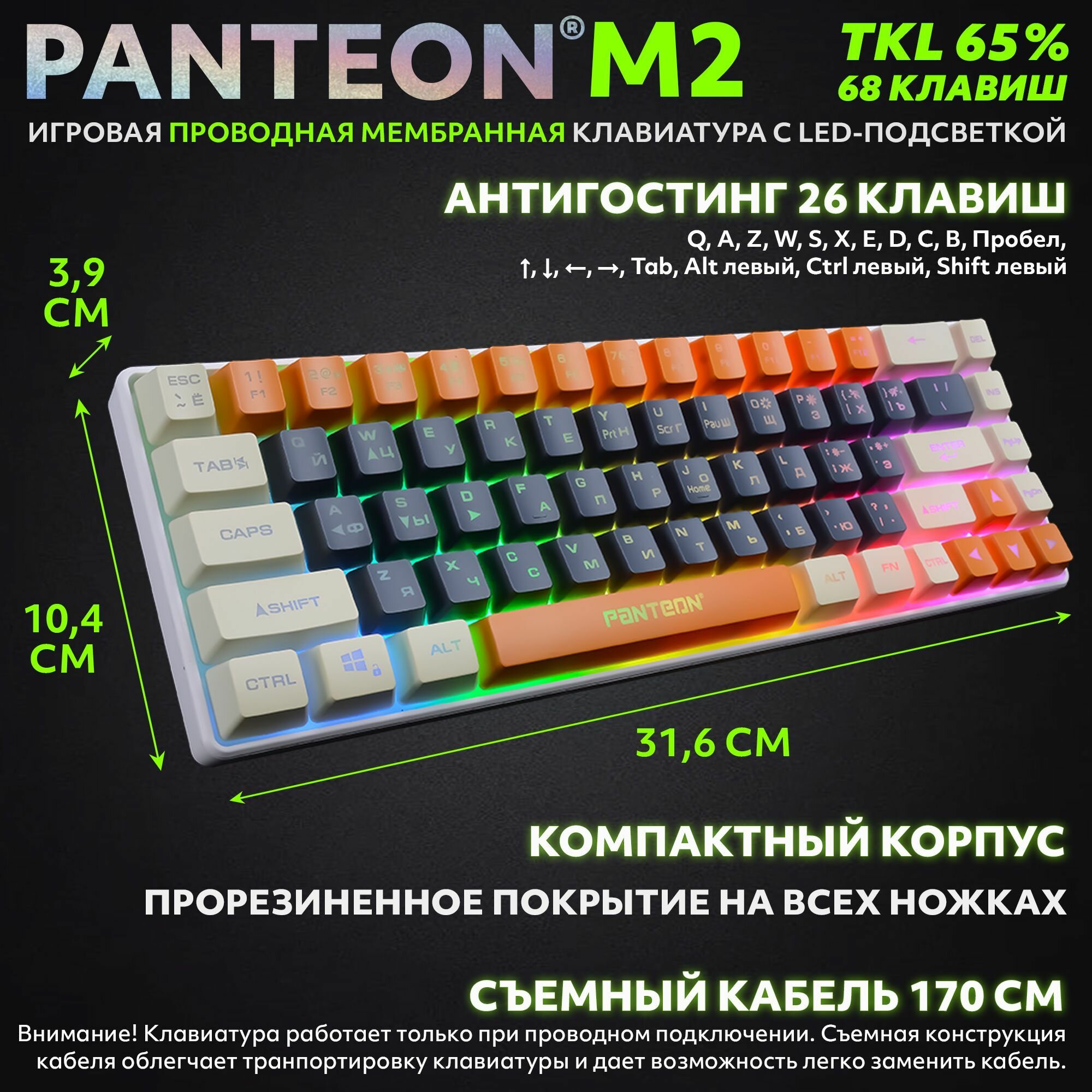 Купить PANTEON M2 Grey-Ivory(02) Игровая мембранная TKL (65%) клавиатура с LED-подсветкой MULTICOLOR (68 кл, USB), цвет: серый-слоновая кость (02)
