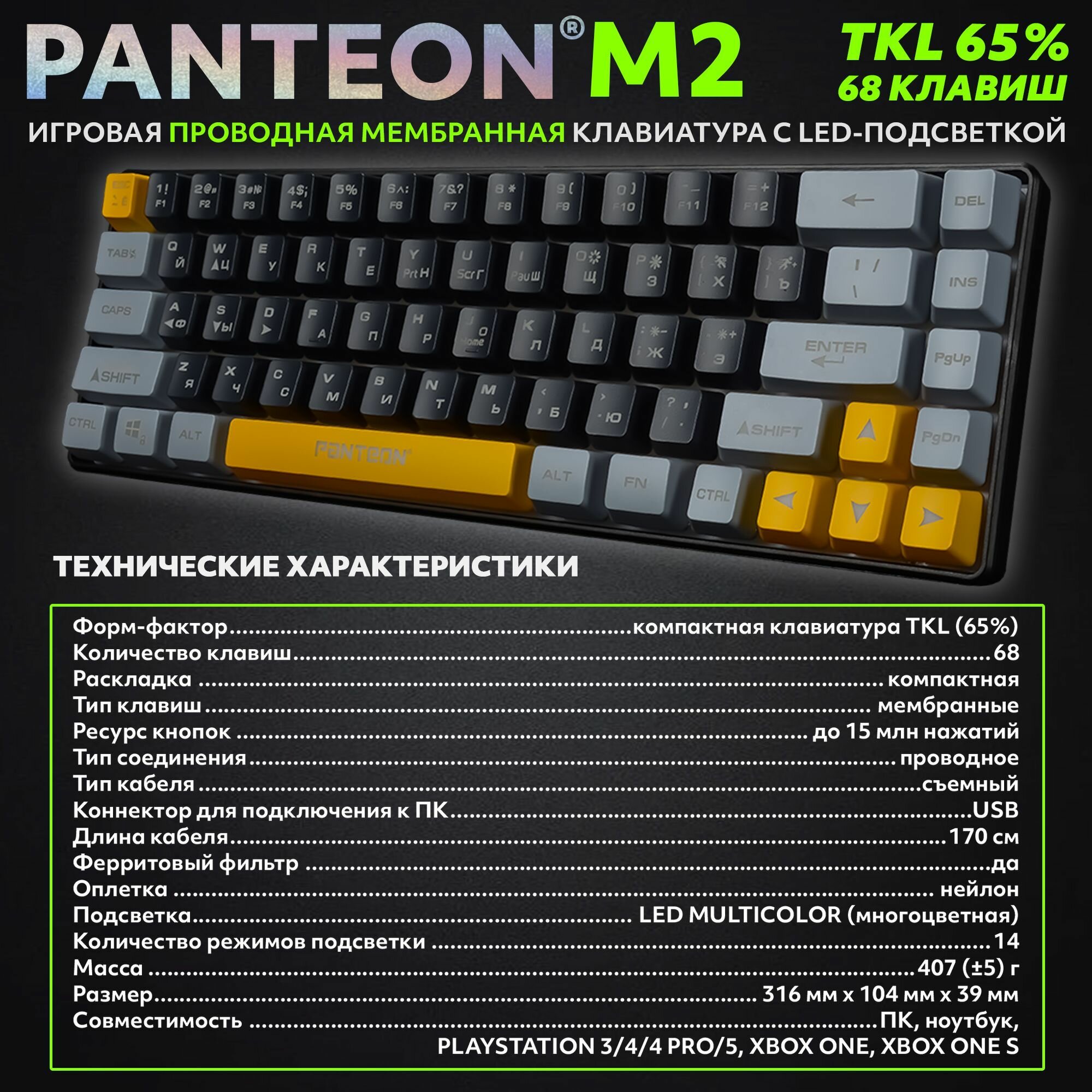 PANTEON M2 Grey-Black(03) Игровая мембранная TKL (65%) клавиатура с LED-подсветкой MULTICOLOR (68 кл.,USB), цвет: серый-черный (03)"