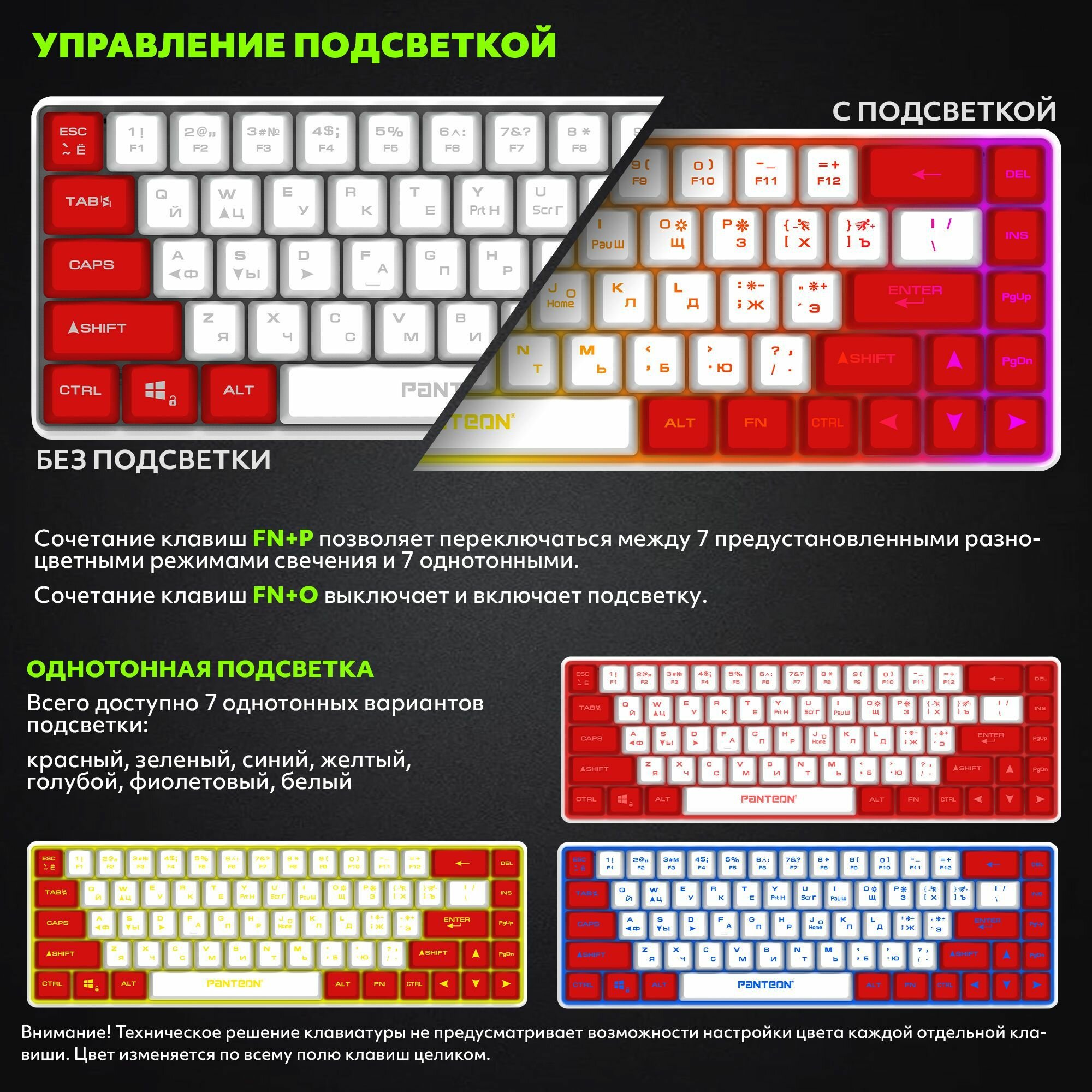 PANTEON M2 Red-White(06) Игровая мембранная TKL (65%) клавиатура с LED-подсветкой MULTICOLOR (68 кл.,USB), цвет: красный-белый (06)