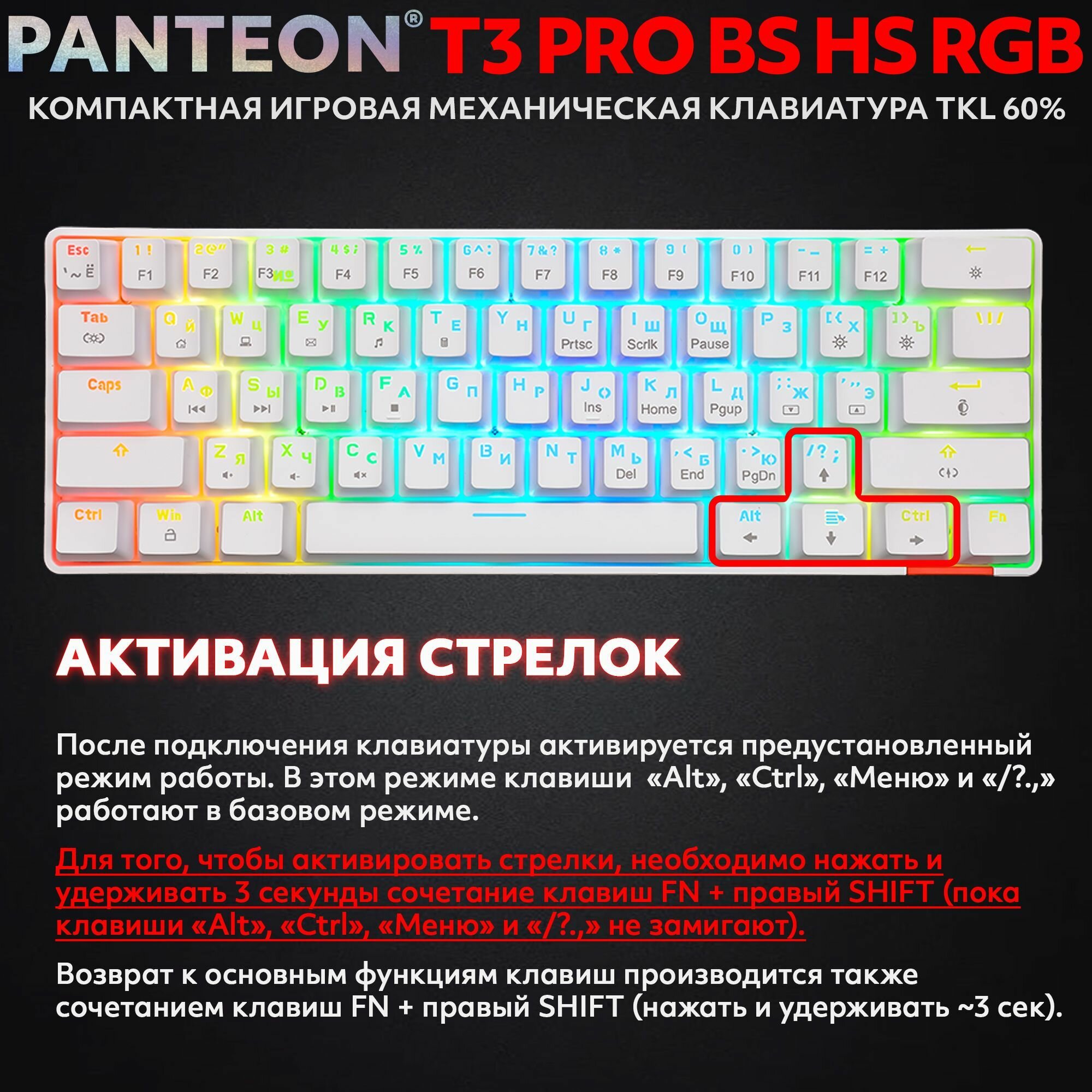 СохранитьPANTEON T3 PRO BS HS RGB White (31) Механическая клавиатура (TKL 60%, подсветка LED RGB, Jixian Black, 61 кл, HotSwap, USB), цвет: белый (31) интересное: