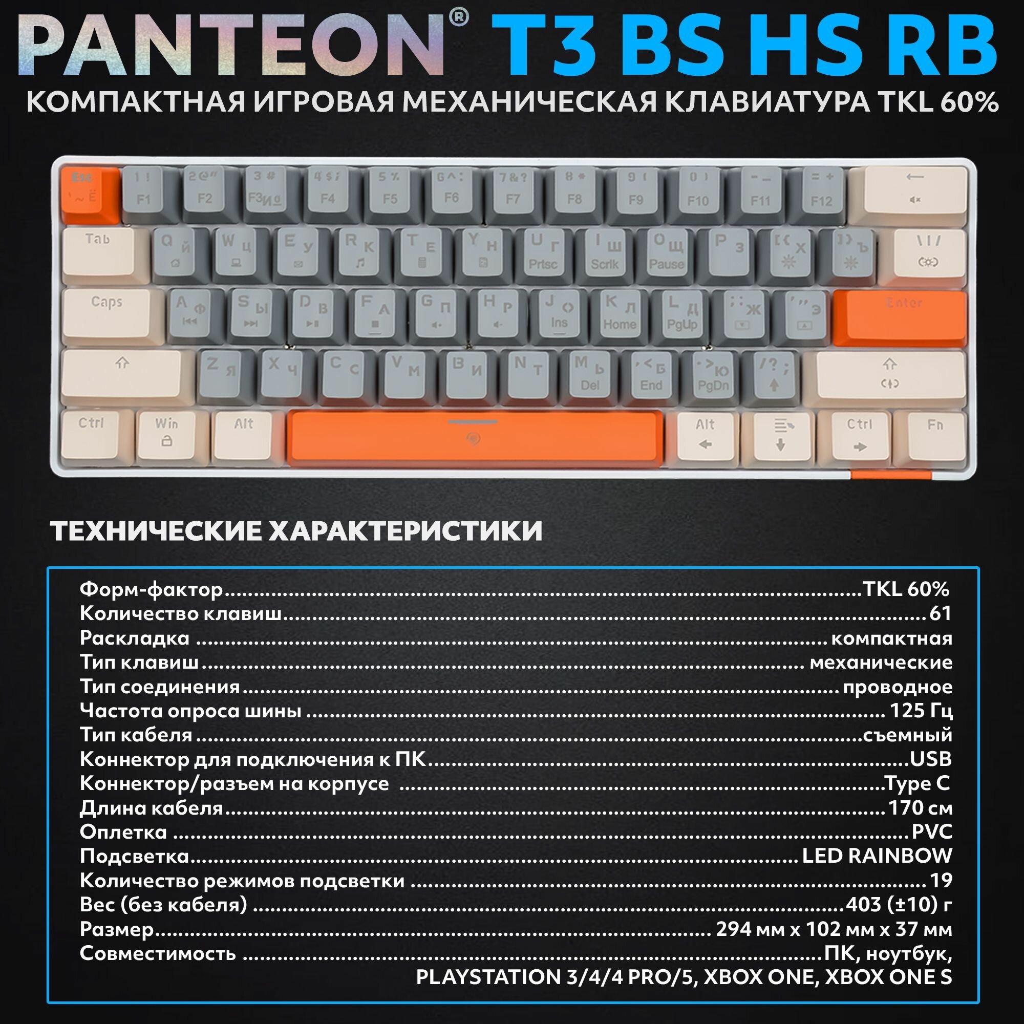 PANTEON T3 BS HS RB Grey-Ivory (34) Механическая клавиатура (Jixian Black, 61 кл., HotSwap, USB)