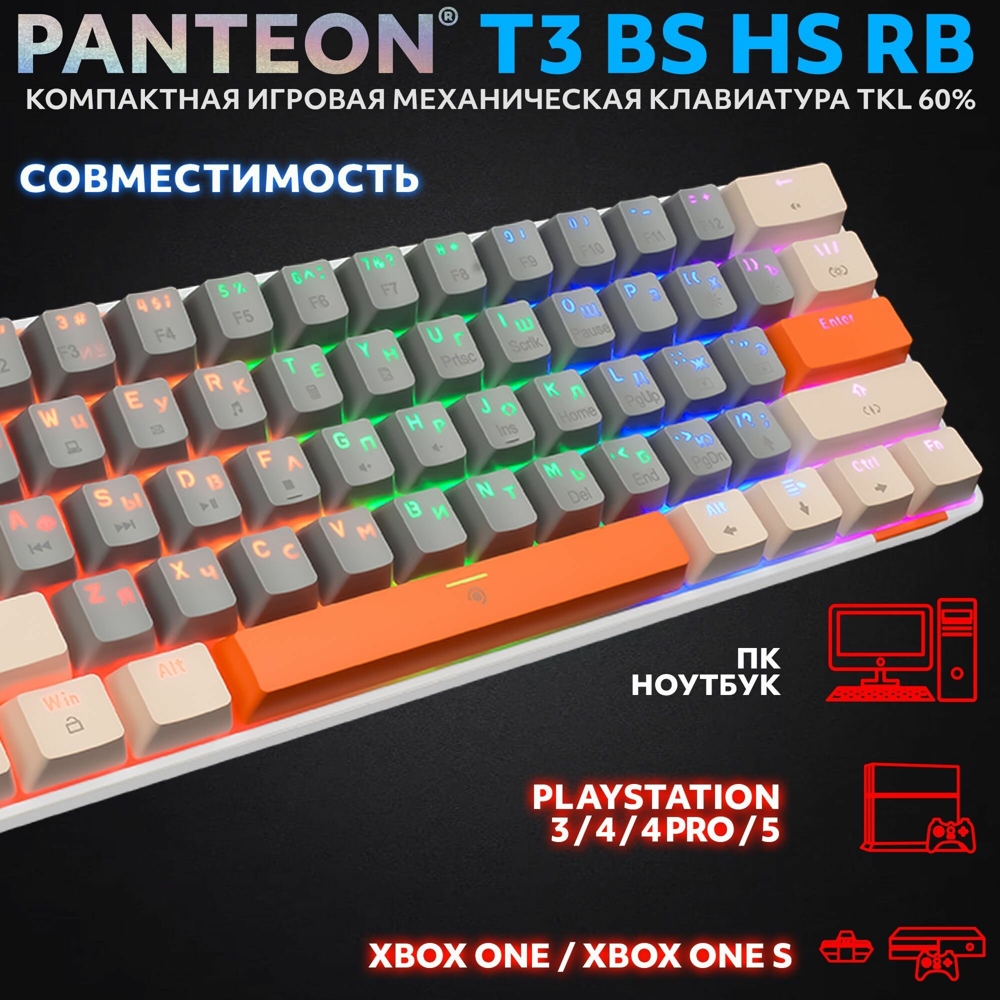 PANTEON T3 RS HS RB White-Grey (37) Механическая клавиатура (TKL 60%, подсветка LED RAINBOW, Jixian Red, 61 кл., HotSwap, USB),цвет: белый-серый (37)
