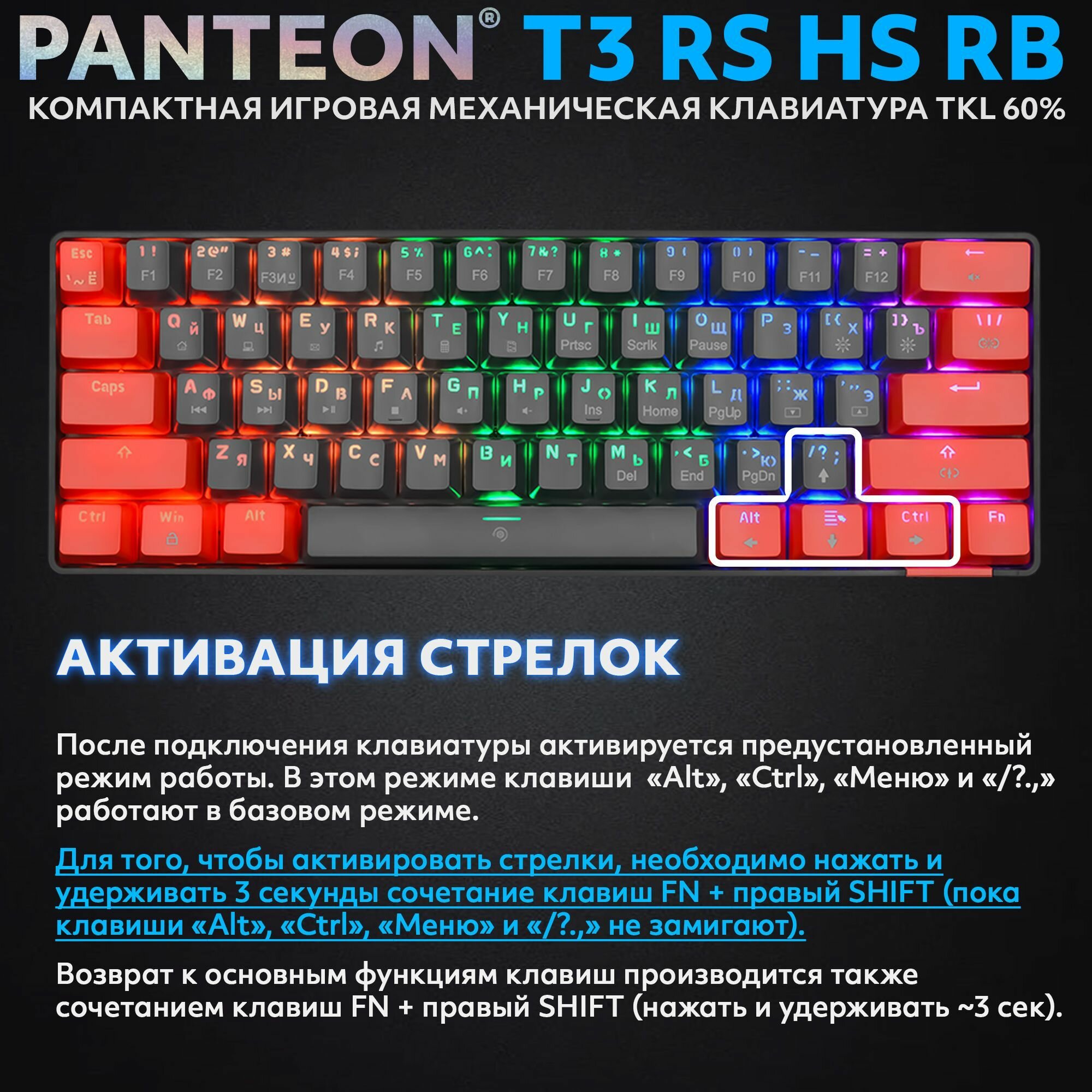 Купить PANTEON T3 RS HS RB Black-Red (46) Механическая клавиатура ( Jixian Red, 61 кл, HotSwap, USB)