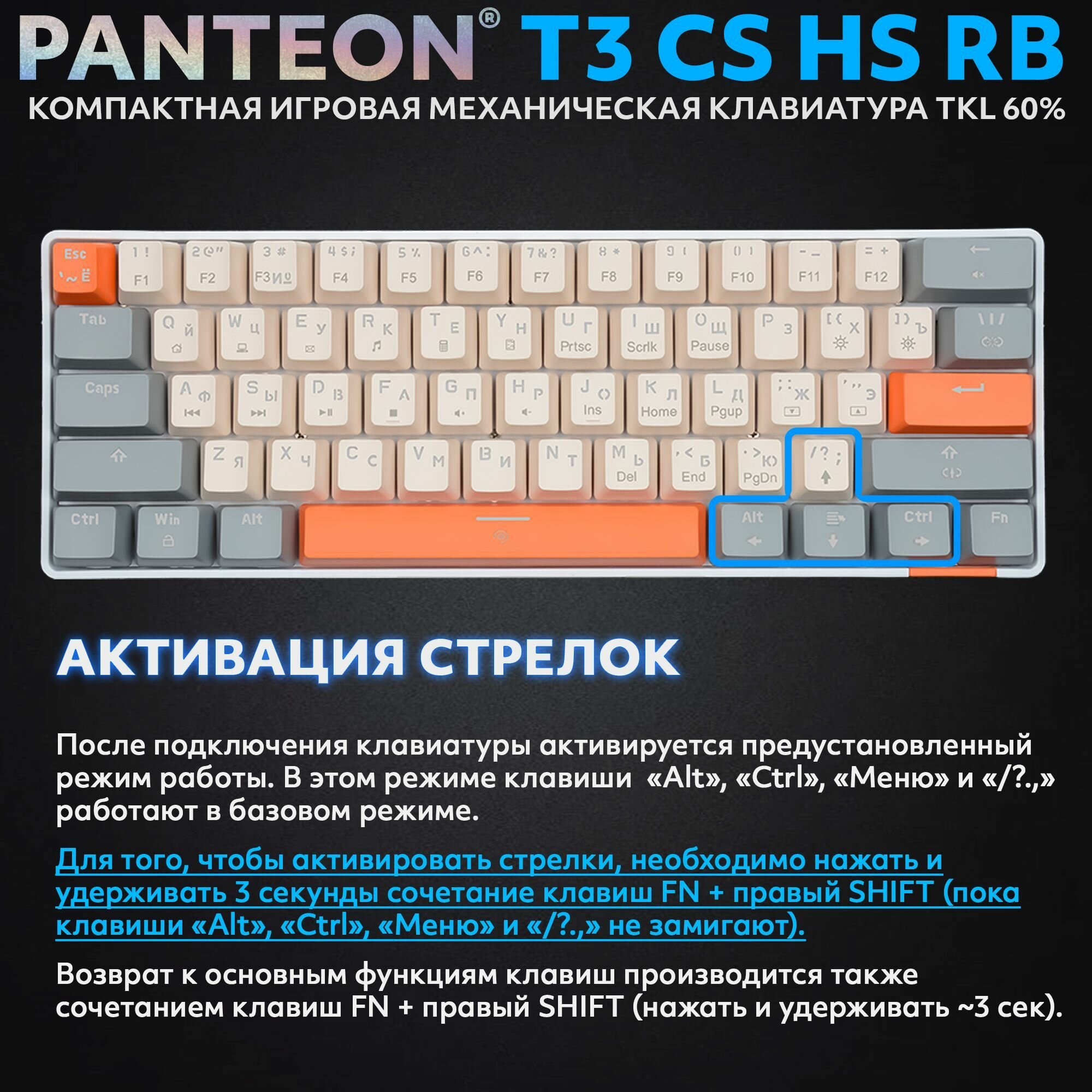 PANTEON T3 RS HS RB White-Grey (37) Механическая клавиатура (TKL 60%, подсветка LED RAINBOW, Jixian Red, 61 кл., HotSwap, USB),цвет: белый-серый (37)