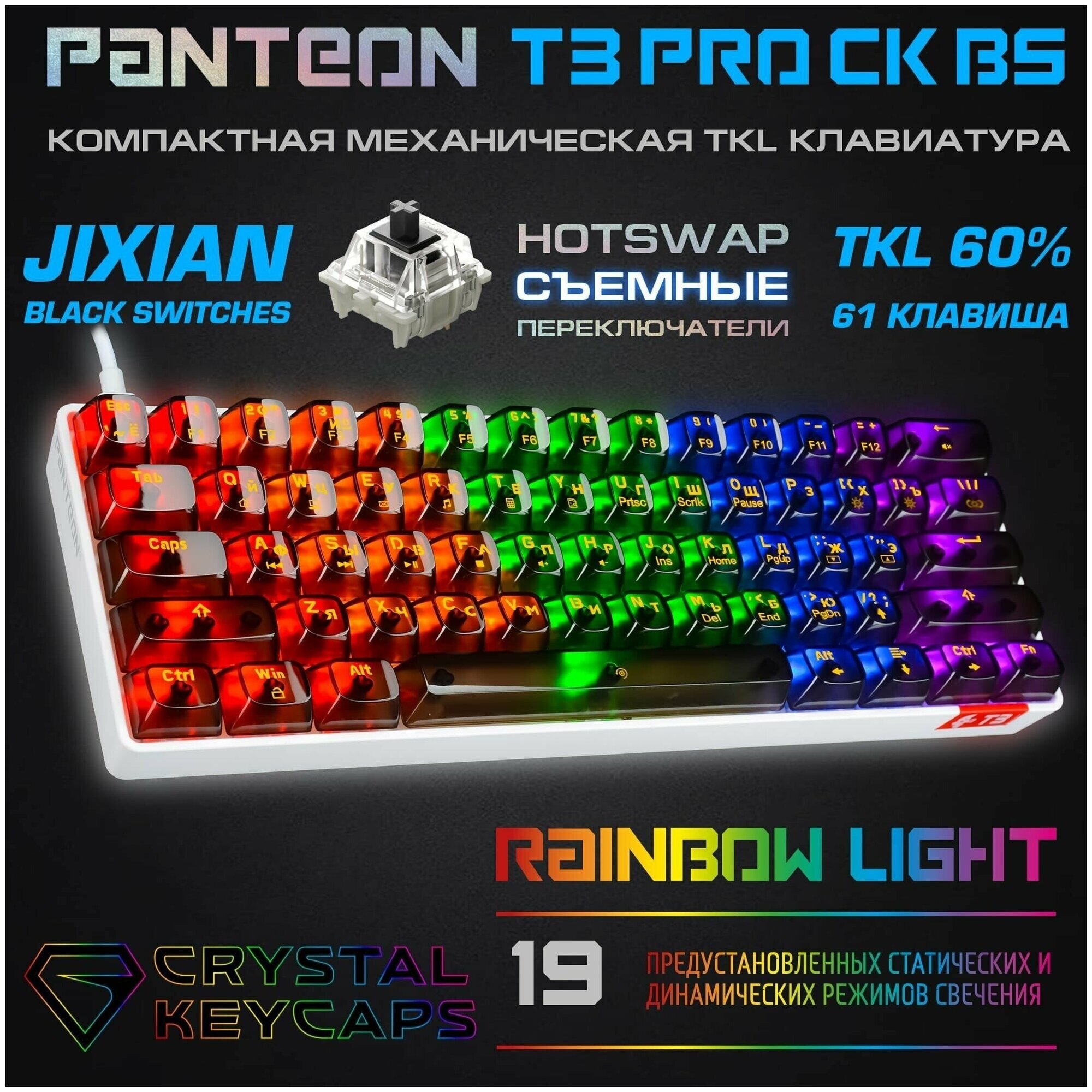 PANTEON T3 PRO BS HS RGB White (31) Механическая клавиатура (TKL 60%, подсветка LED RGB, Jixian Black, 61 кл, HotSwap, USB), цвет: белый (31)