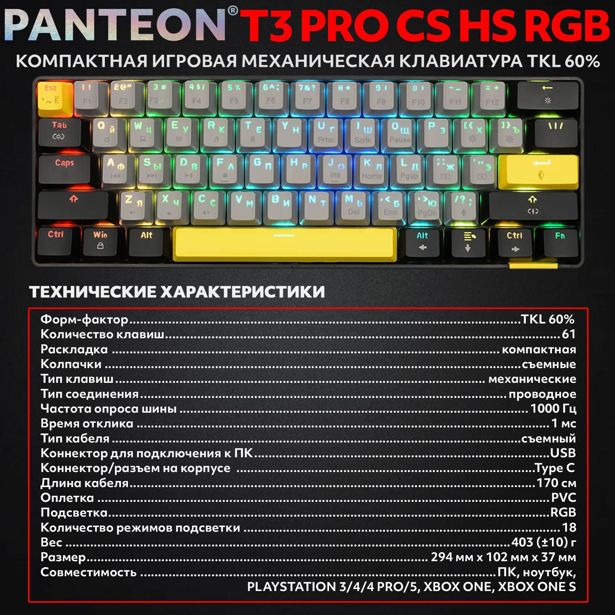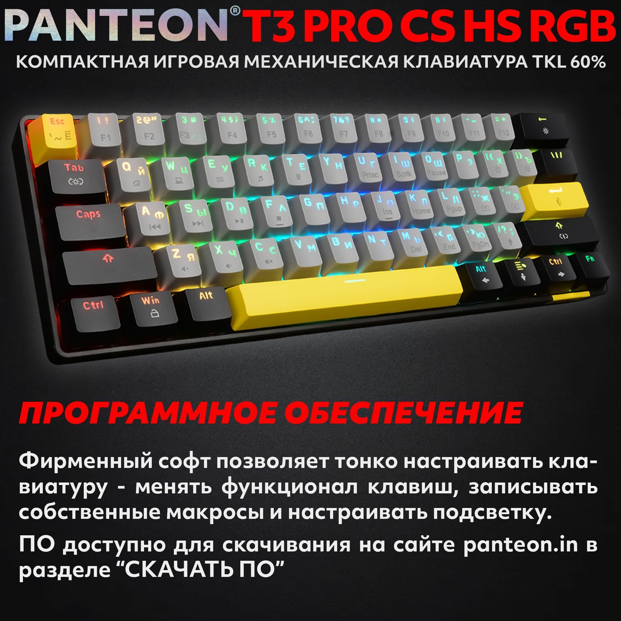 PANTEON T3 PRO BS HS RGB Black-Grey (41) Механическая клавиатура (Jixian Black, 61 кл, HotSwap, USB)