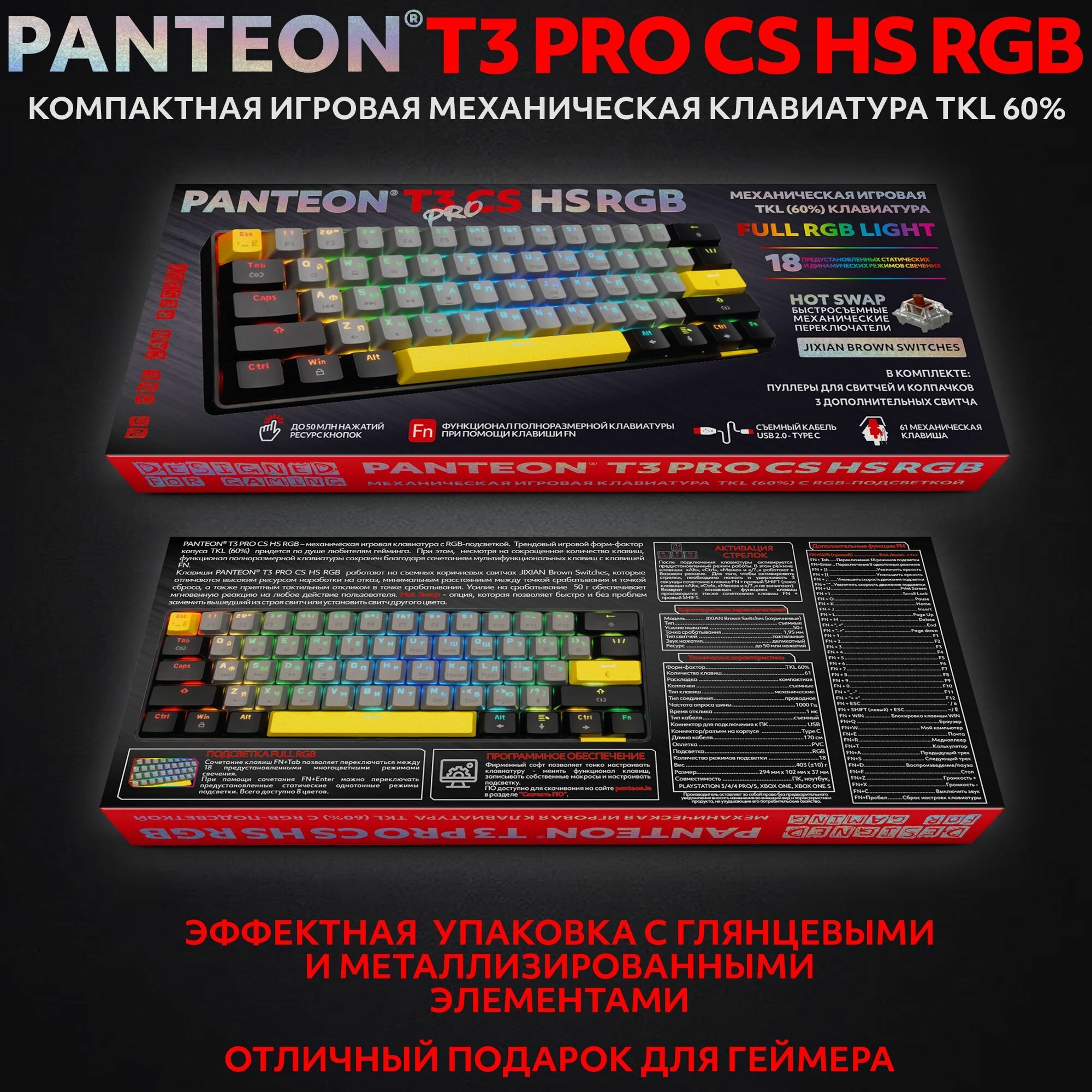 PANTEON T3 PRO CS HS RGB Grey-Black (39) Механическая клавиатура Jixian Brown, 61 кл., HotSwap, USB)