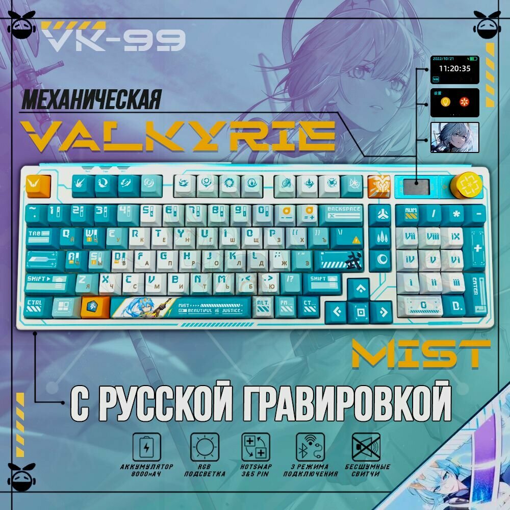 Механическая игровая беспроводная клавиатура VALKYRIE VK99-Mist. Бело-голубая. Русская раскладка.