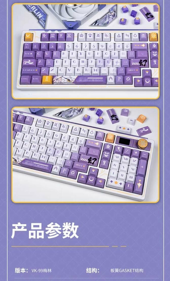 Механическая игровая беспроводная клавиатура VALKYRIE VK99-Merlin. Бело-фиолетовая. Русская раскладка.