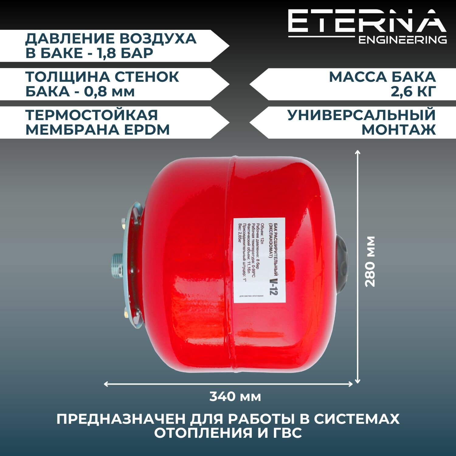 Расширительный бак ETERNA Engineering V012 12 л вертикальная установка