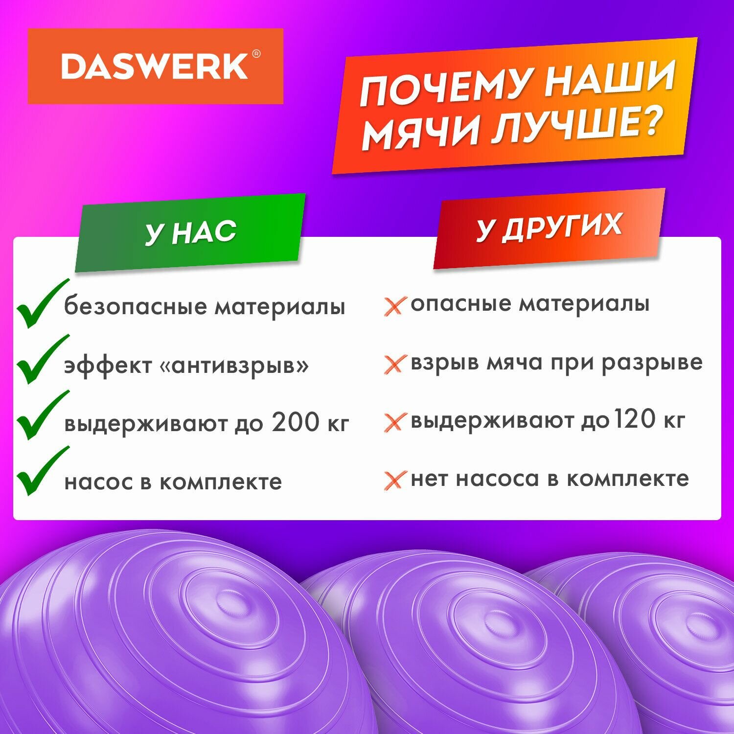 Купить Гимнастический мяч DASWERK фитбол, 65 см, с эффектом Антивзрыв, с ручным насосом, фиолетовый (680017)