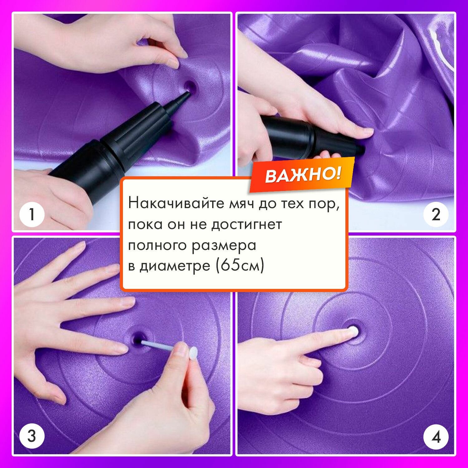 Мяч гимнастический (фитбол) 65 см с эффектом "антивзрыв", с ручным насосом, фиолетовый, DASWERK, 680017 (680017)