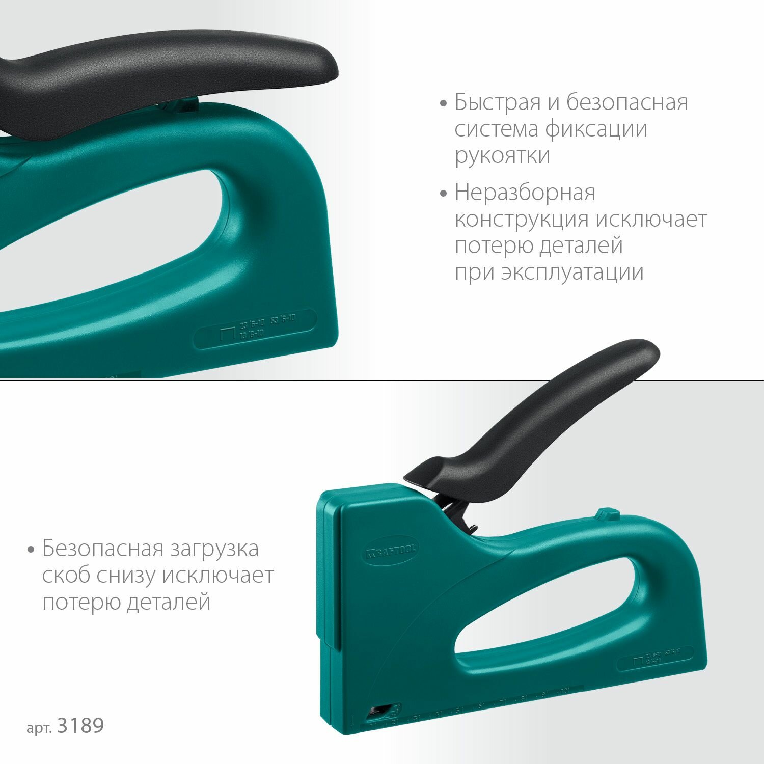 Пластиковый мощный степлер KRAFTOOL STRIKE, 3-в-1: тип 53 (A/10/JT21) 23GA (6 - 10 мм)/13/23 (3189) интересное: