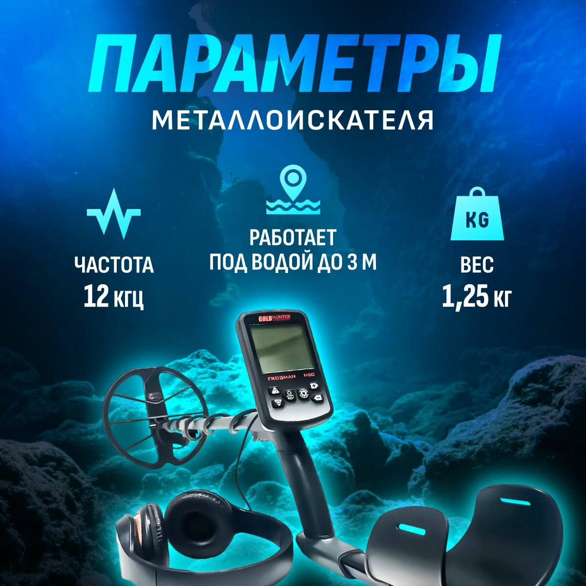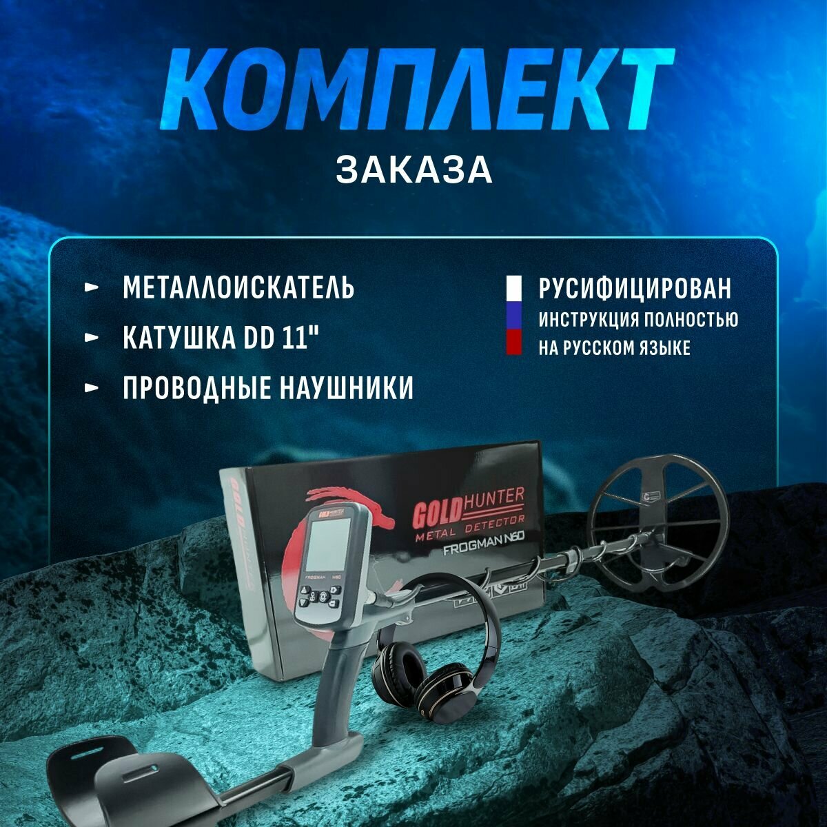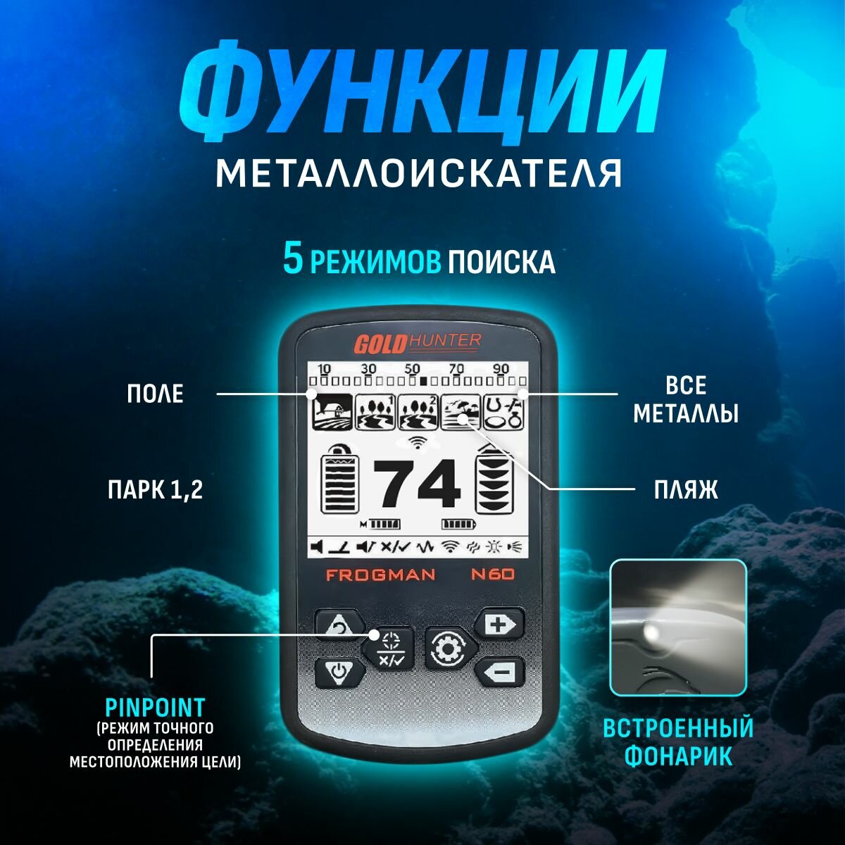 Водонепроницаемый металлоискатель Gold Hunter Frogman N60 с DD катушкой 11" и проводными наушниками / голд хантер фрогман н60 интересное: