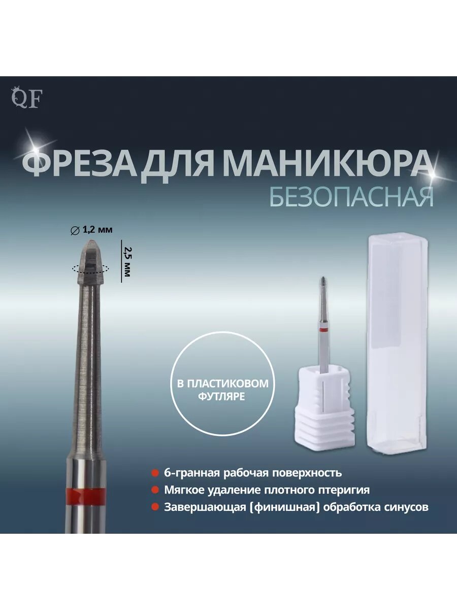 Queen fair Фреза для маникюра, безопасная, 4 грани, 1,2 × 2,5 мм, в пластиковом футляре