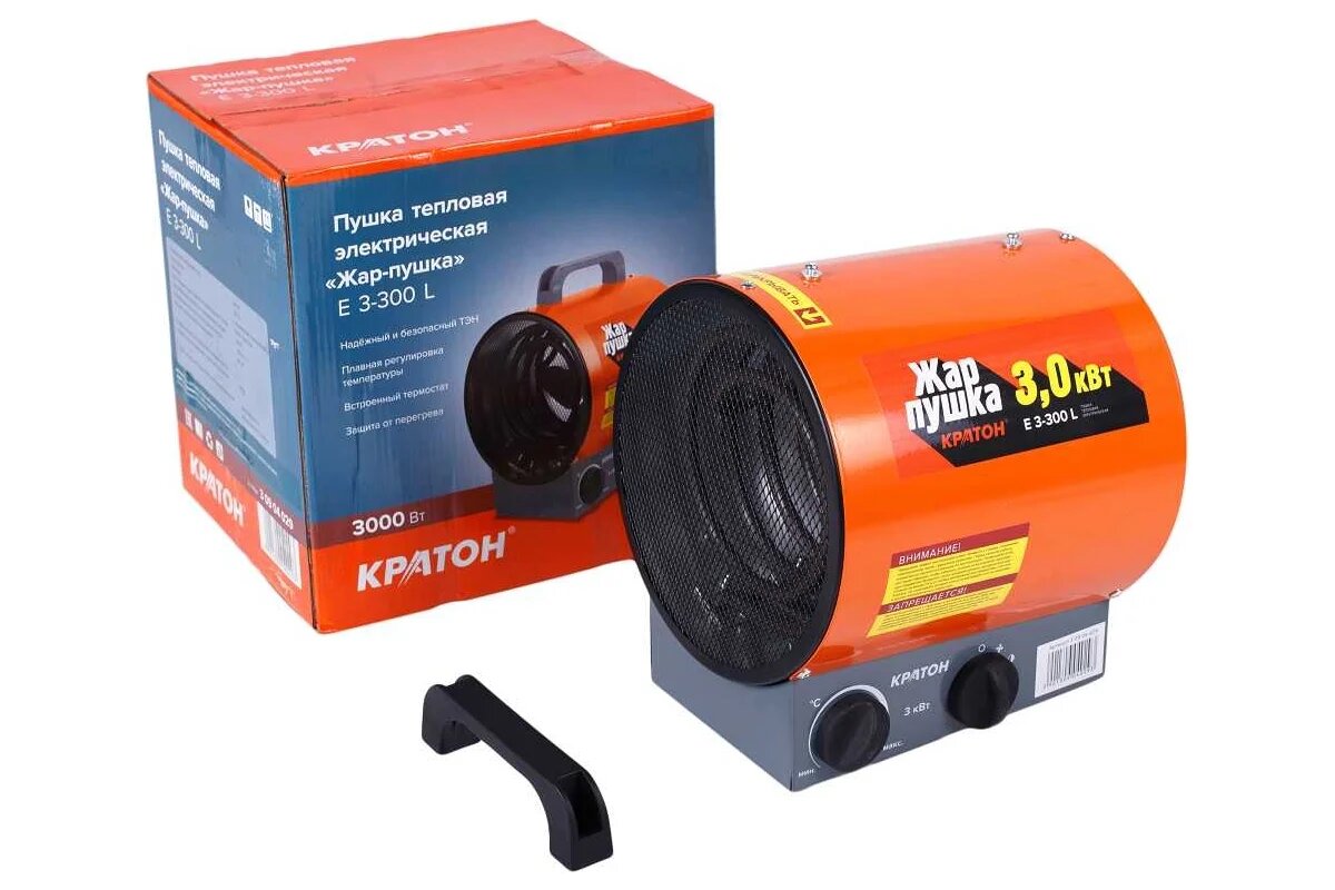Пушка тепловая электрическая Кратон Жар-пушка Е 3-300 L, мощность 3 кВт, площадь отапливаемого помещения 30 кв. м. интересное: