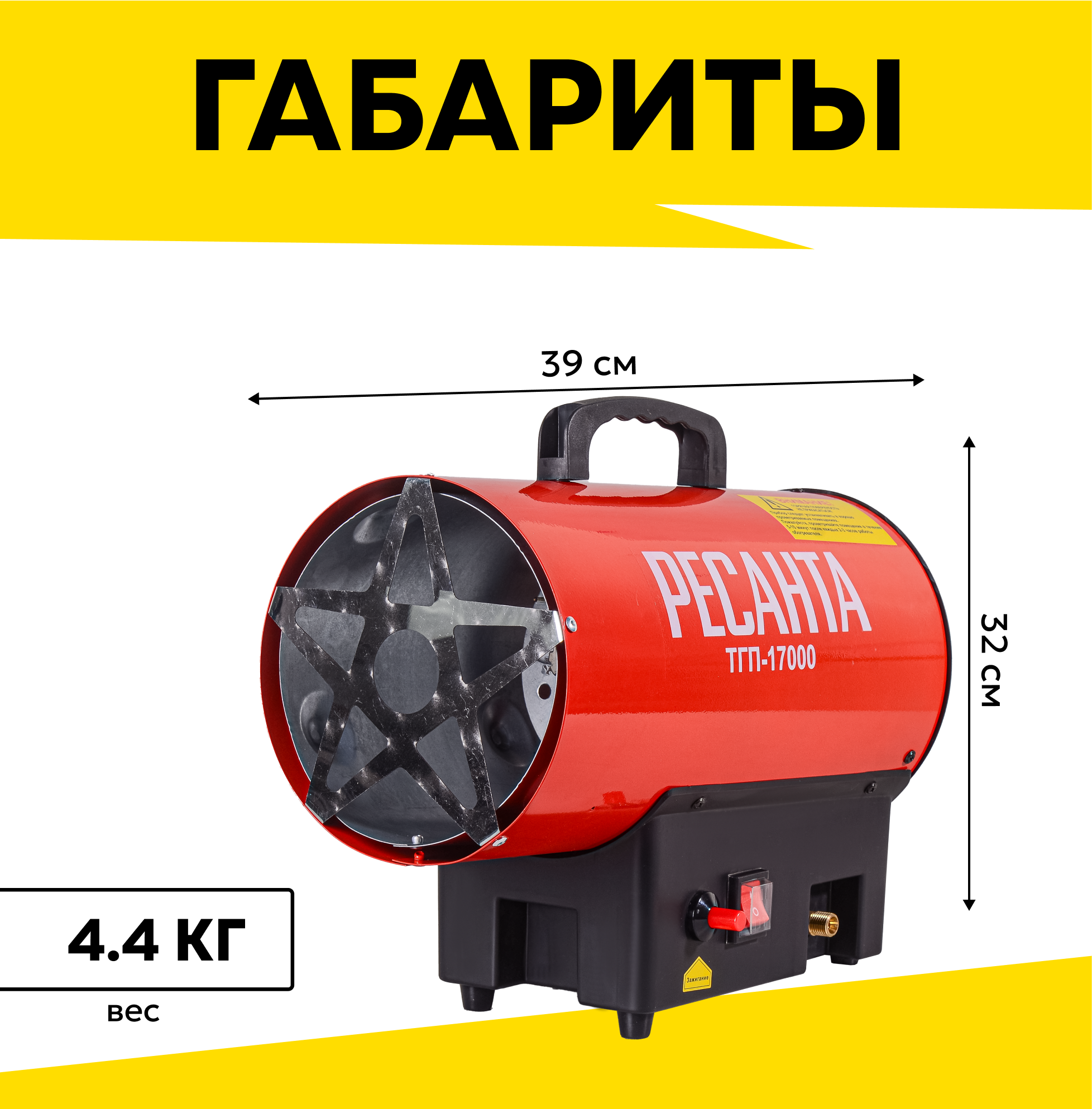 Тепловая газовая пушка Ресанта ТГП-17000 , тепловая мощность 11-17 кВт интересное: