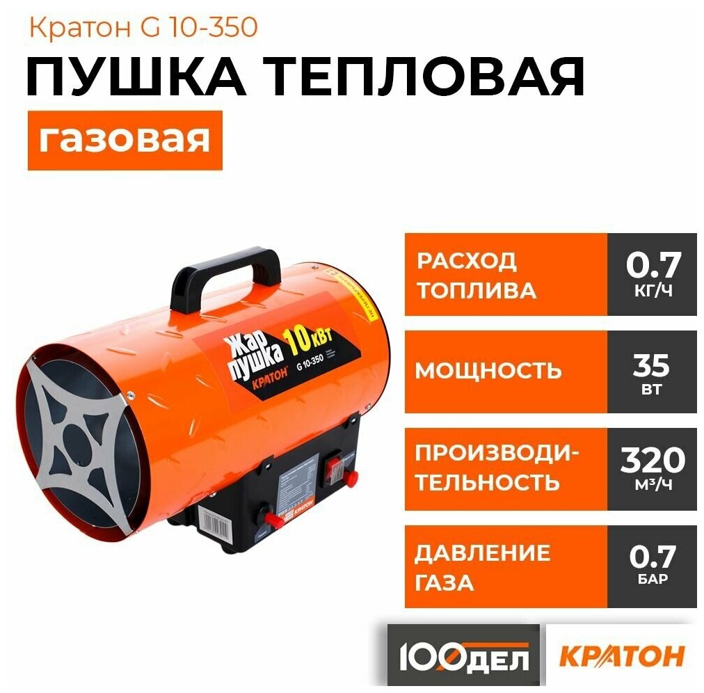 Пушка тепловая газовая Кратон Жар-пушка G 10-350 3 09 03 011 10кВТ ; 320м3/ч интересное: