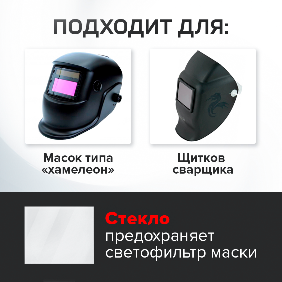 | Дополнительная информация | Стекло защитное (115х105мм) поликарбонат для сварочной маски (5шт) |