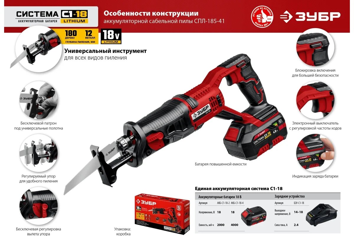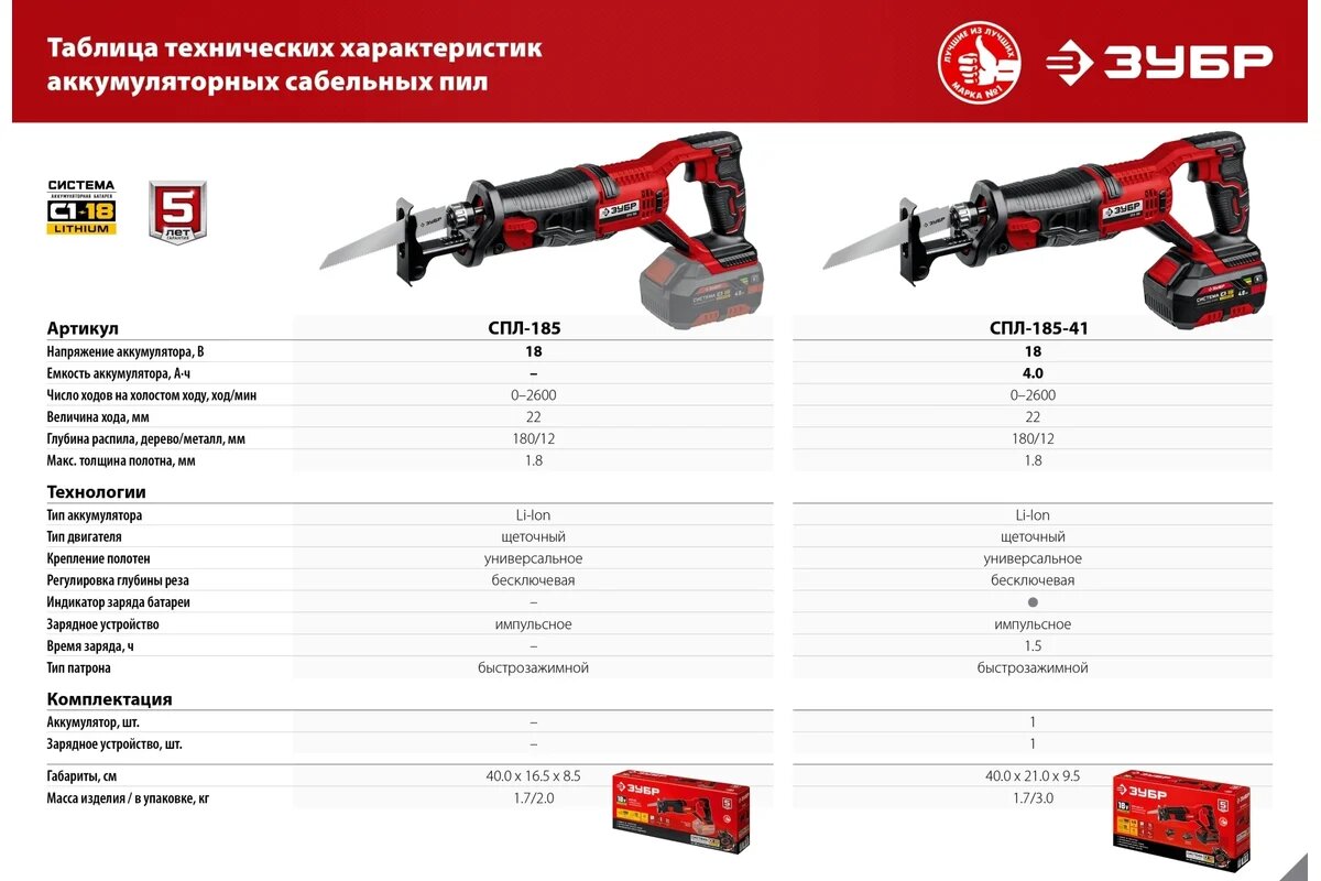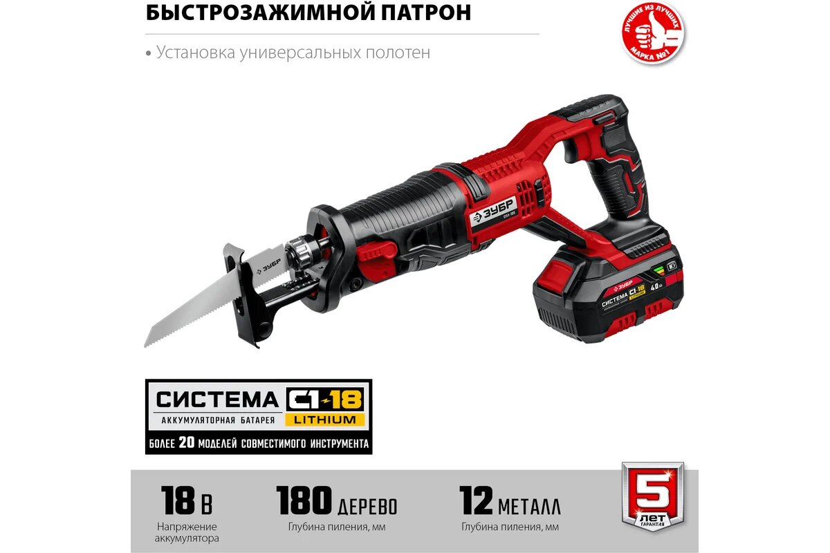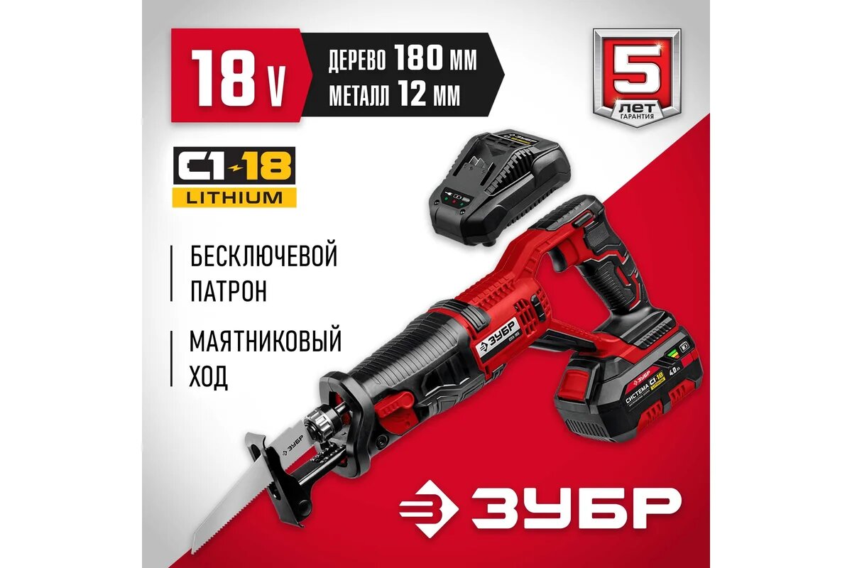 Сабельная пила Зубр СПЛ-185-41, аккумуляторная