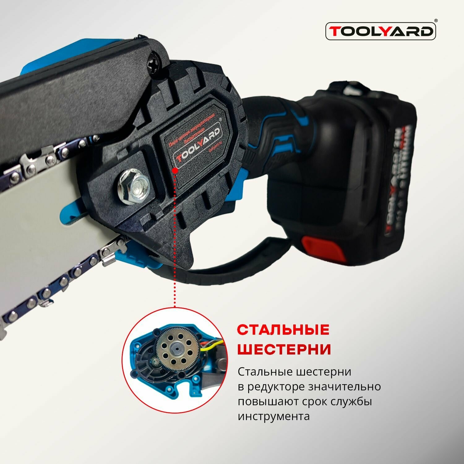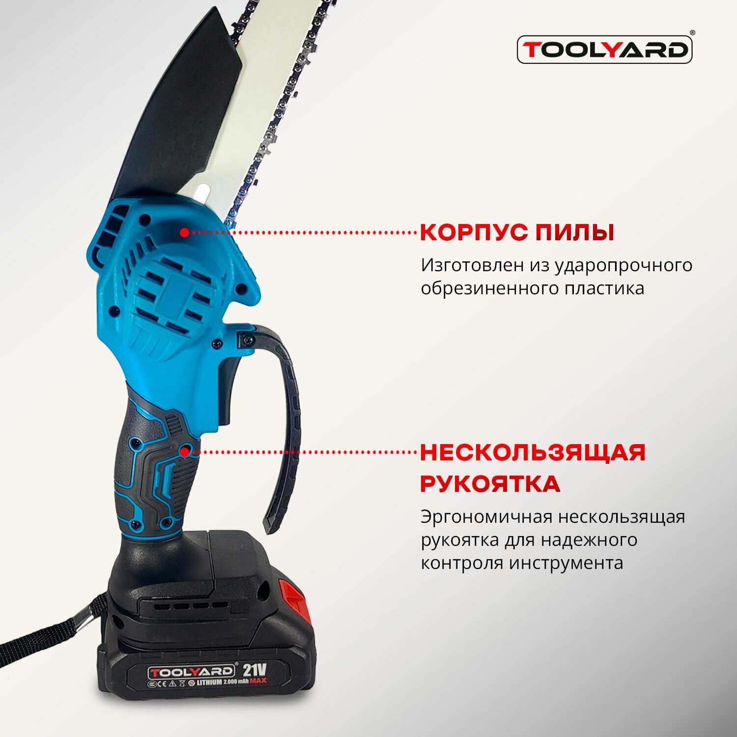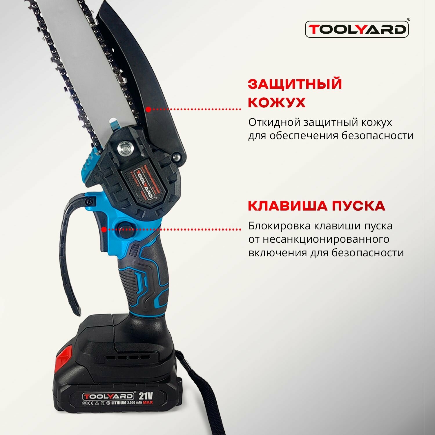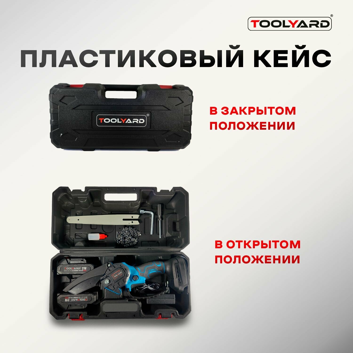 Цепная пила аккумуляторная щеточная TOOLYARD 21B 0-3000 об/мин (АКБ Li-ion-2шт, 2.0Ач, 8", шина, цепь, ЗУ, в кейсе) интересное:
