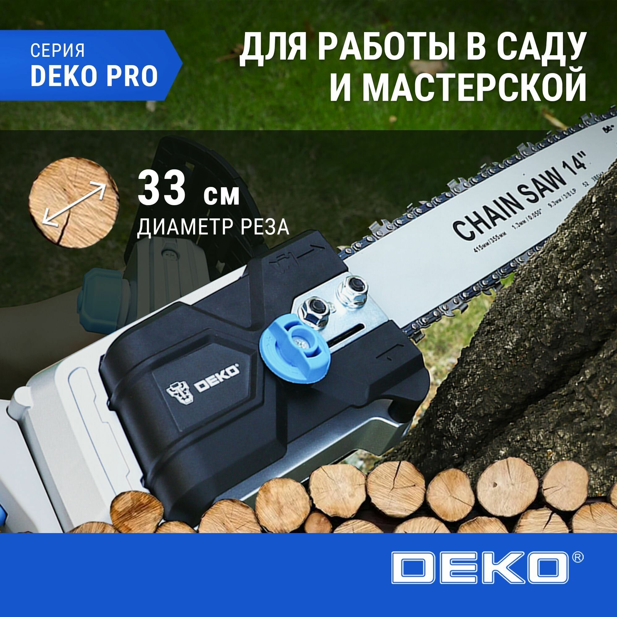 Цепная пила DEKO DKCHS 40 PRO, аккумуляторная, 20В, 4Ач [063-4357]